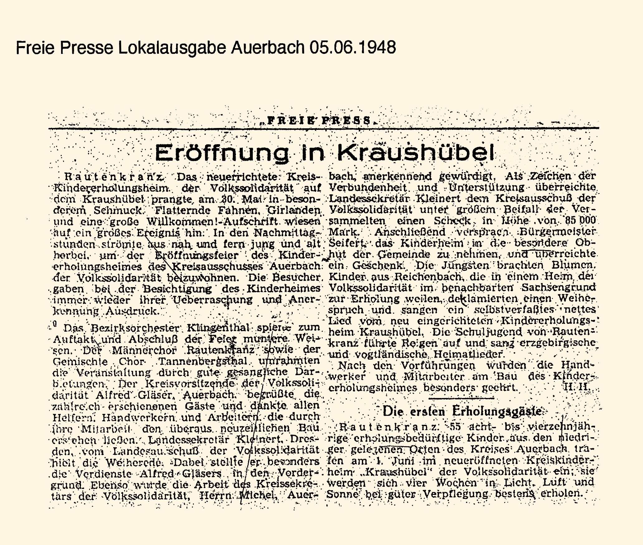 2021: Eine Leserin suchte und fand in einer Ablage ihrer Wohnung, sorgsam aufbewahrt, eine Rarität, einen mehr als 70 Jahre alten Zeitungsartikel über die Einweihungsfeierlichkeit.