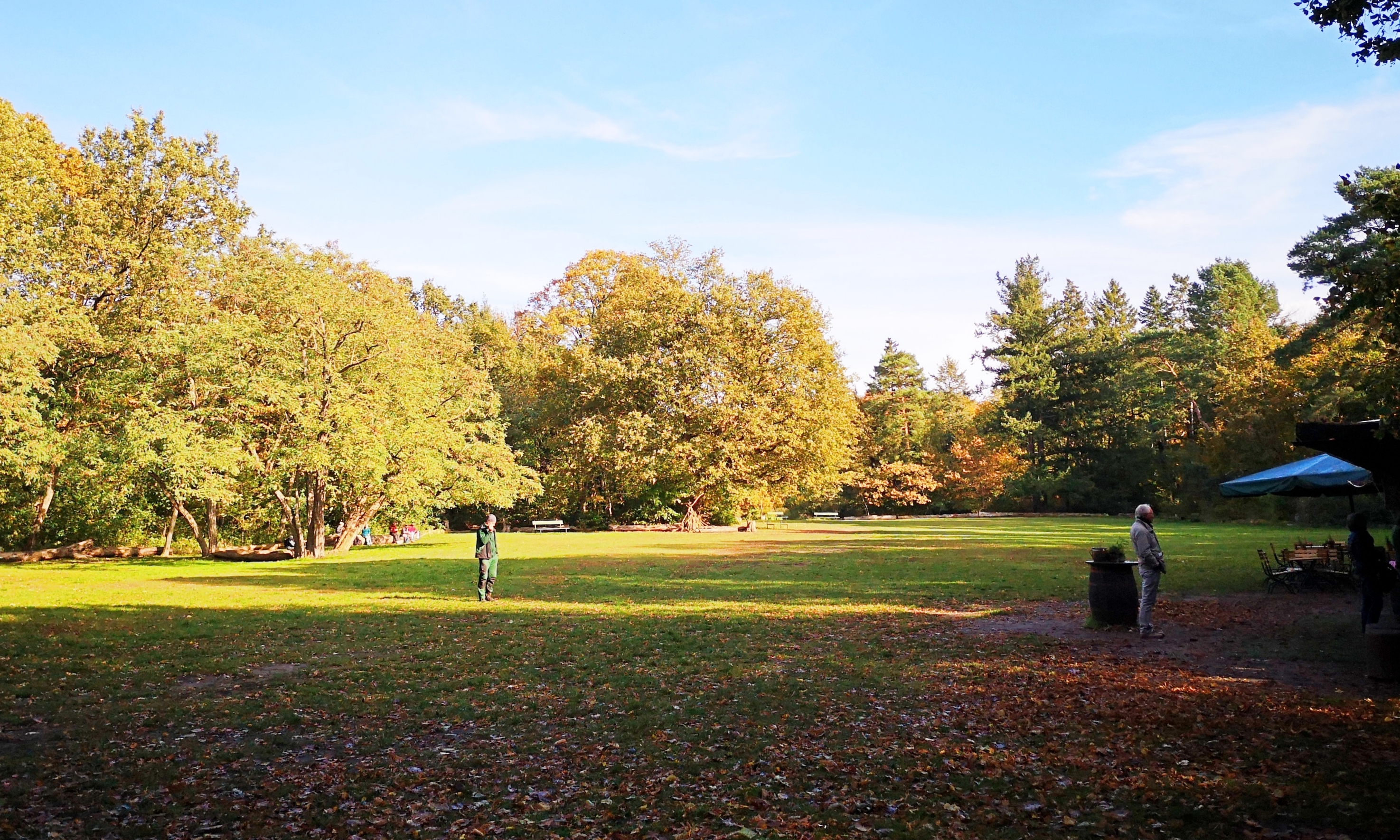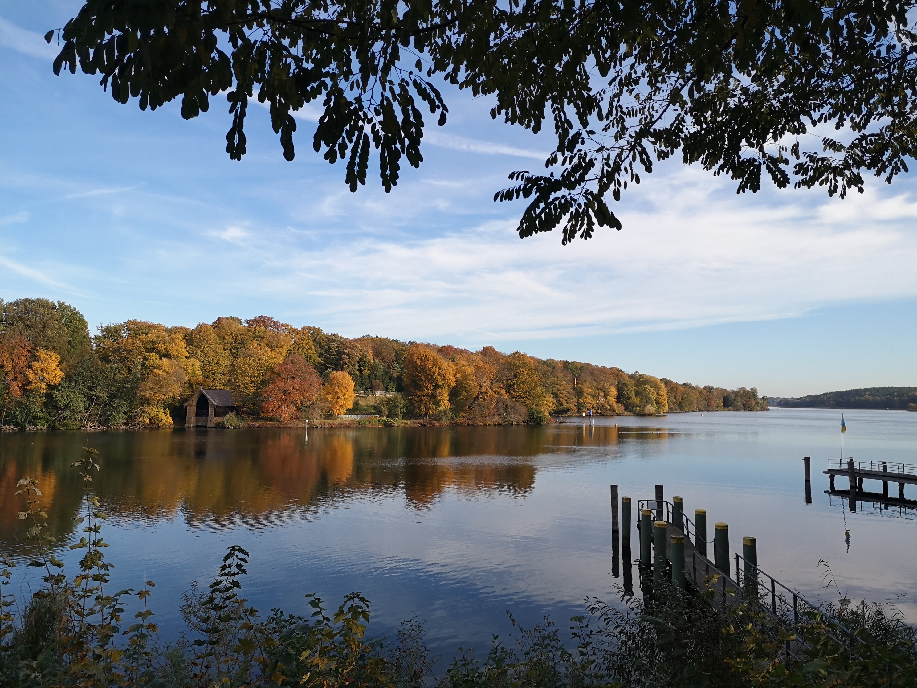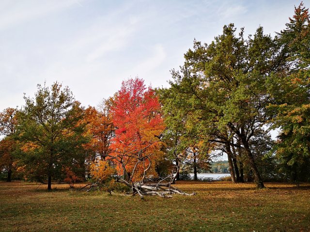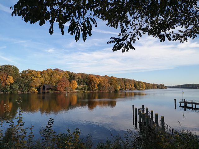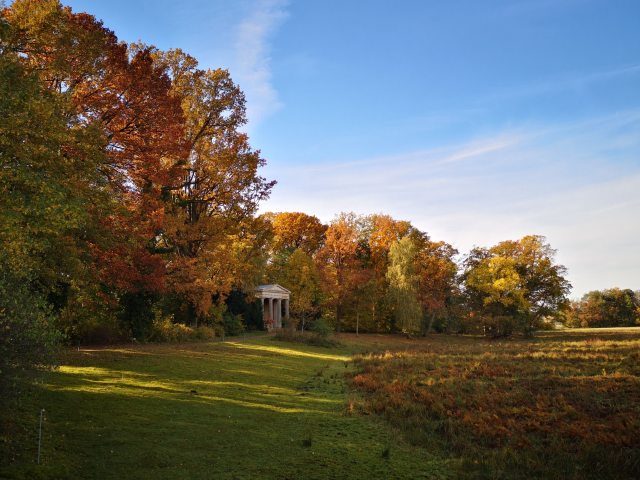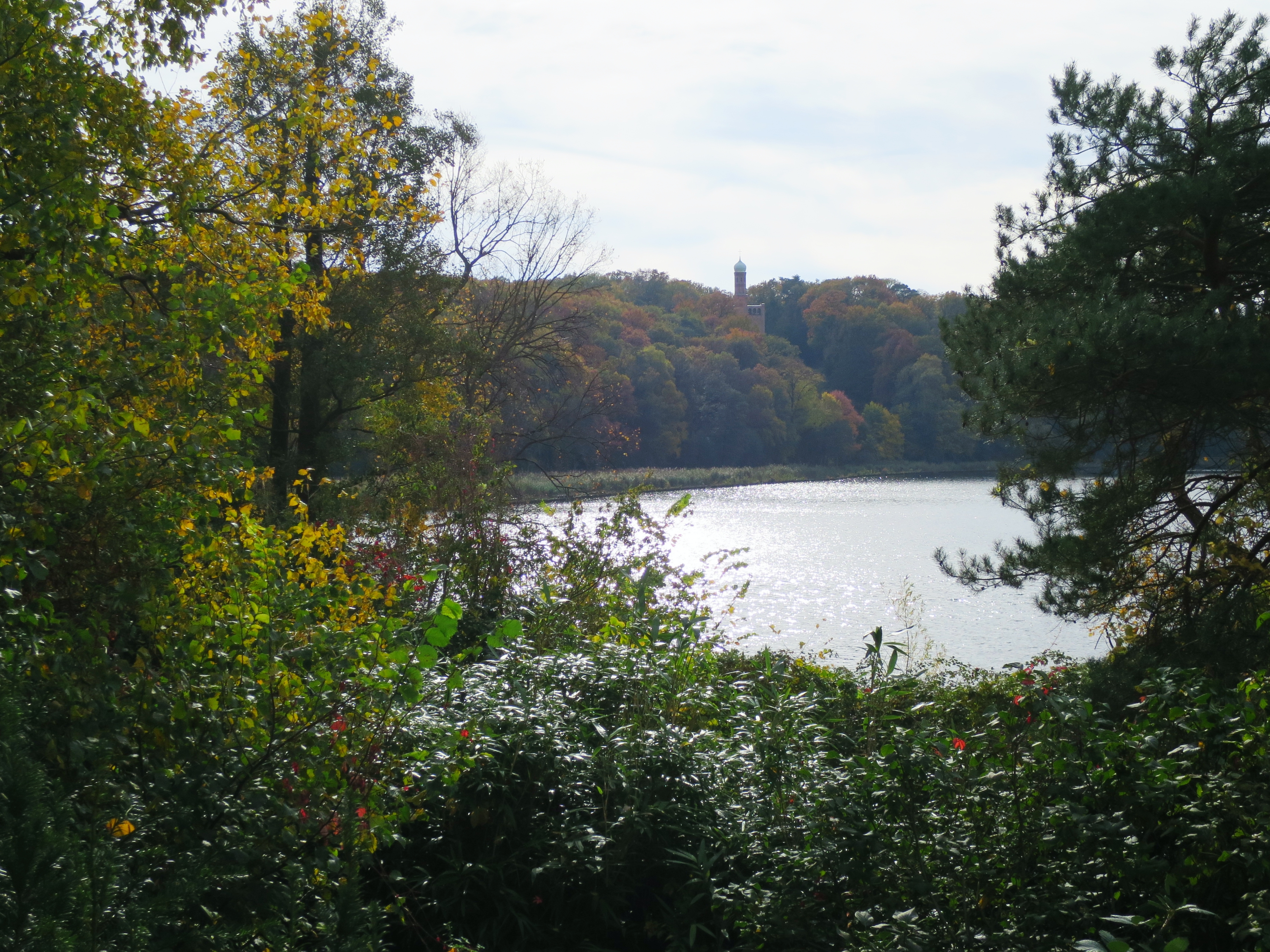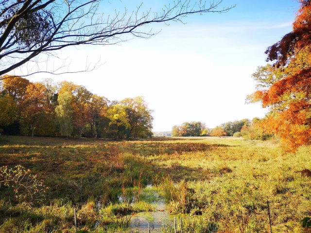 Der Tag unseres Streifzuges durch die lebendige Natur, durch das von Menschenhand Gestaltete, durch mehr als 150 Jahre Geschichte auf engstem Raum, neigt sich nun dem Endpunkt zu. Noch einmal schweift unser Blick nach Nikolskoe, zum Hang des bewaldeten Düppeler Höhenzugs hinüber.