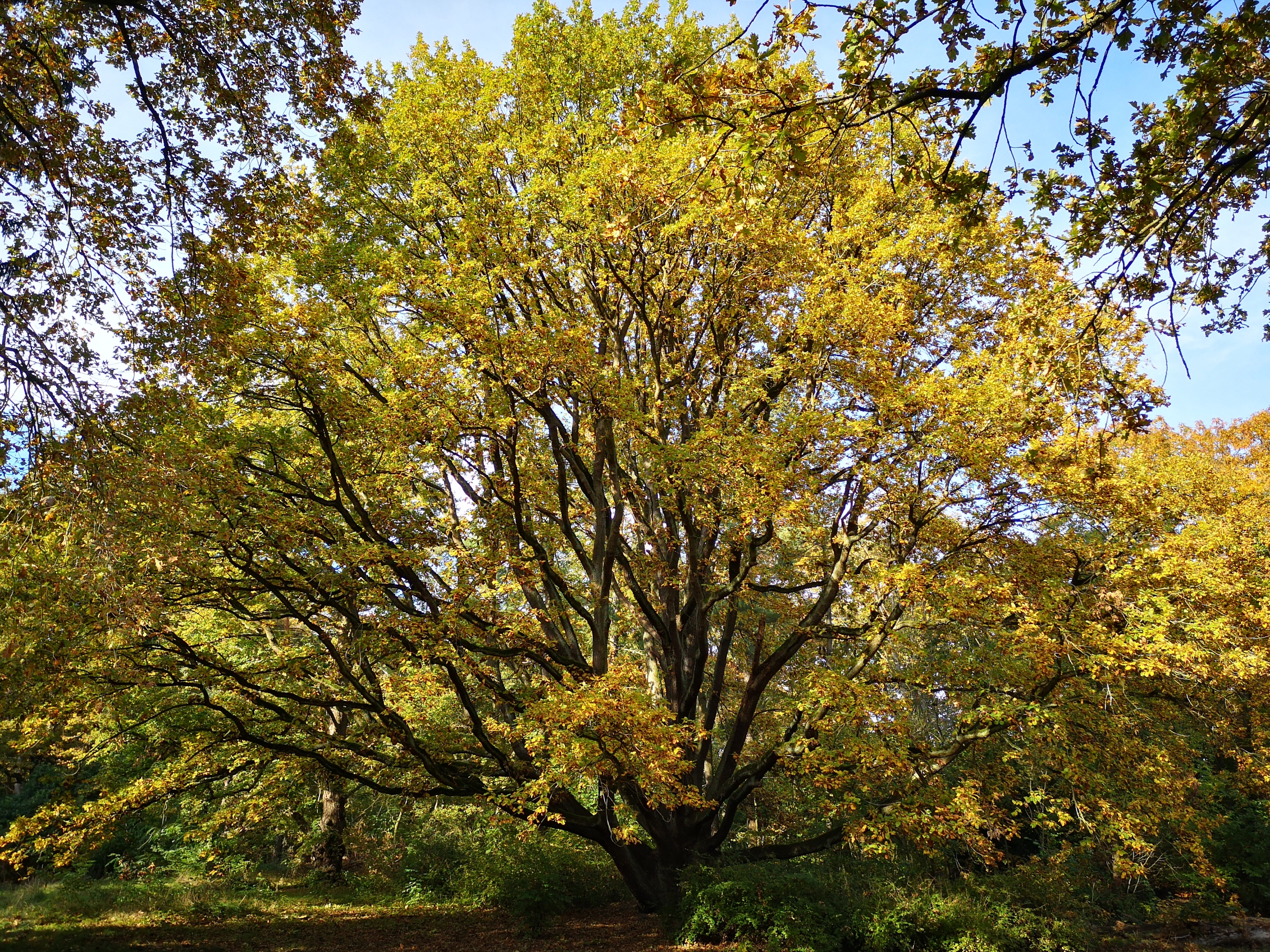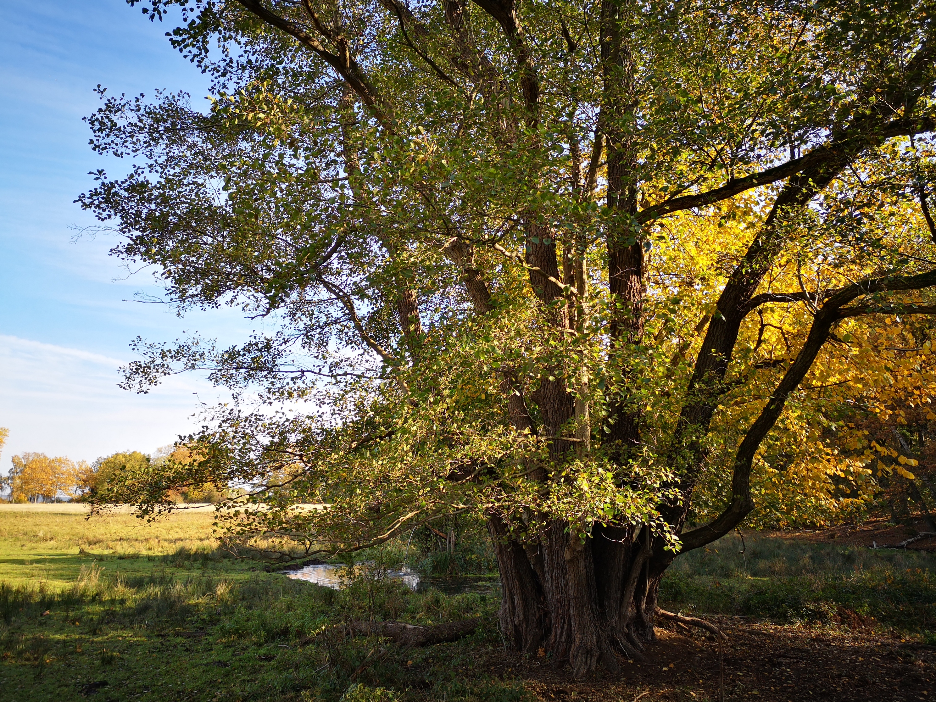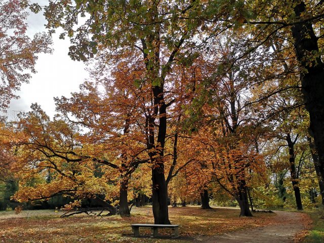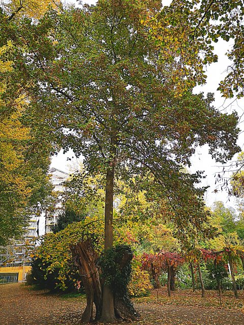 Eine altehrwürdige aufgefächert-verästelte Eiche am östlichen Uferweg des großen Außenrings. Insgesamt gibt es aber viele mehrhundertjährige Bäume zu bewundern. „Sucht nur danach!“ „An welchem Platz?“ „Sucht nur danach, ...“