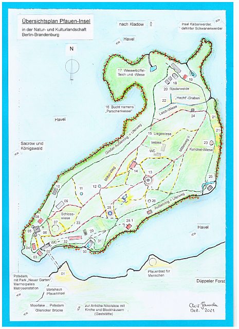 Übersichtsplan der Pfauen-Insel.