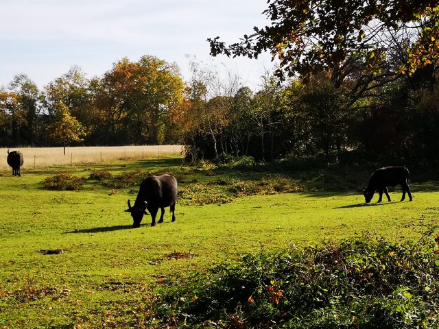 Ein Rinderweidenauslauf – die Büffelwiese bietet diesen braven Haus- und Inseltieren eine vorzügliche Gräser- und Kräutermischung als Nahrung. Auch ein Haveltrinkwasserteich ist für sie vorhanden - im Übersichtsplan Punkt 17 -.