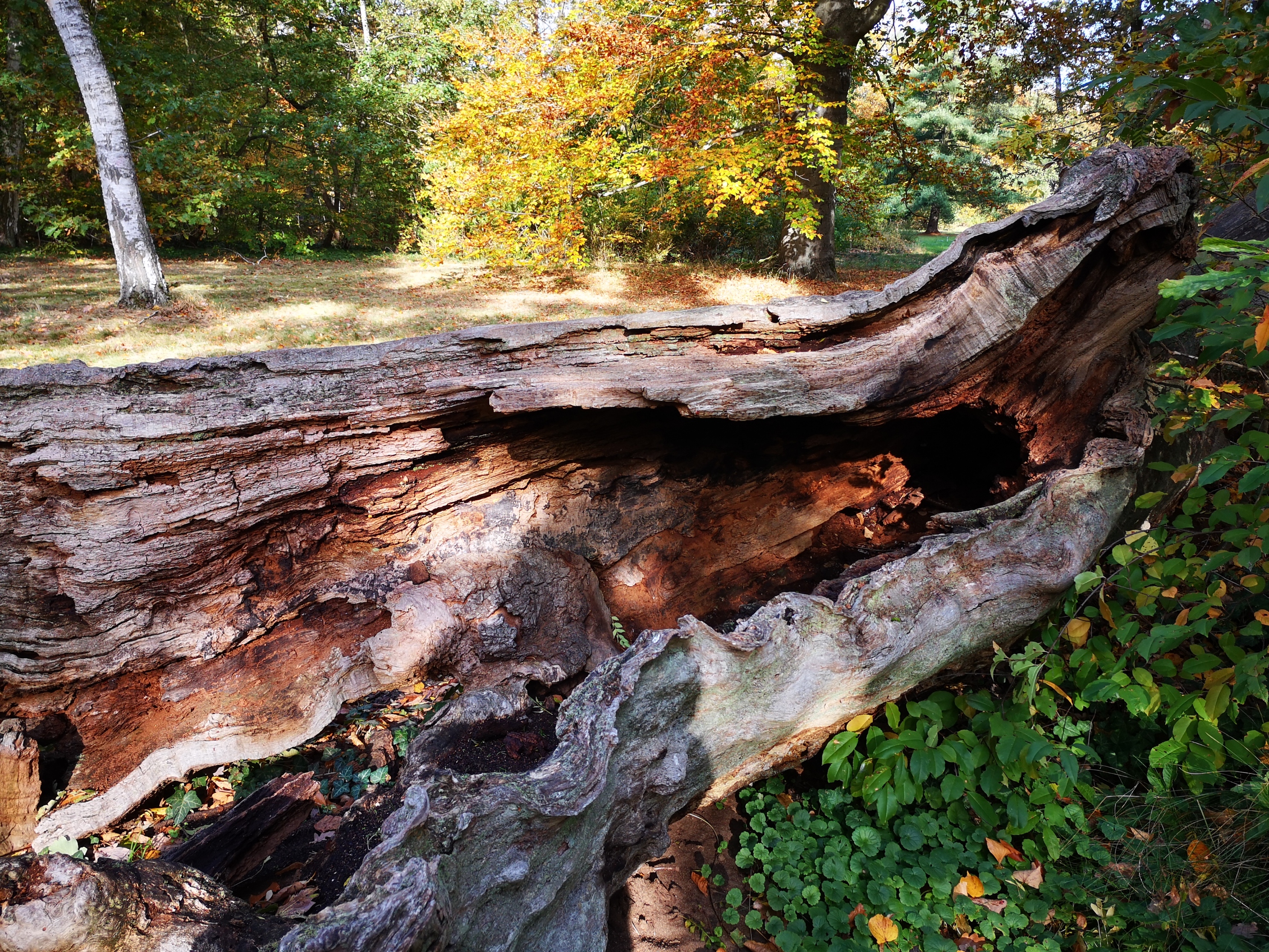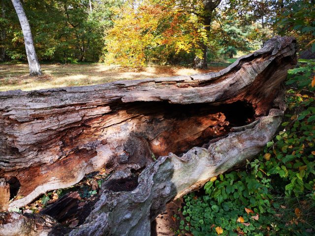 Vergehe und Werde! Vom Alter gebeugt, vom Sturm geschüttelt oder vom Blitz getroffen – werden einheimische und auch fremdländische Baumriesen der Insel. Sie bieten nach ihrem Ableben zahlreichen Generationen verschiedener Tierarten eine willkommene Heimstatt, wie auch Pflanzengesellschaften eine förderliche Lebensgrundlage. Es ist behutsam beabsichtigt, dass hier kein Mensch extra energisch aufräumt.