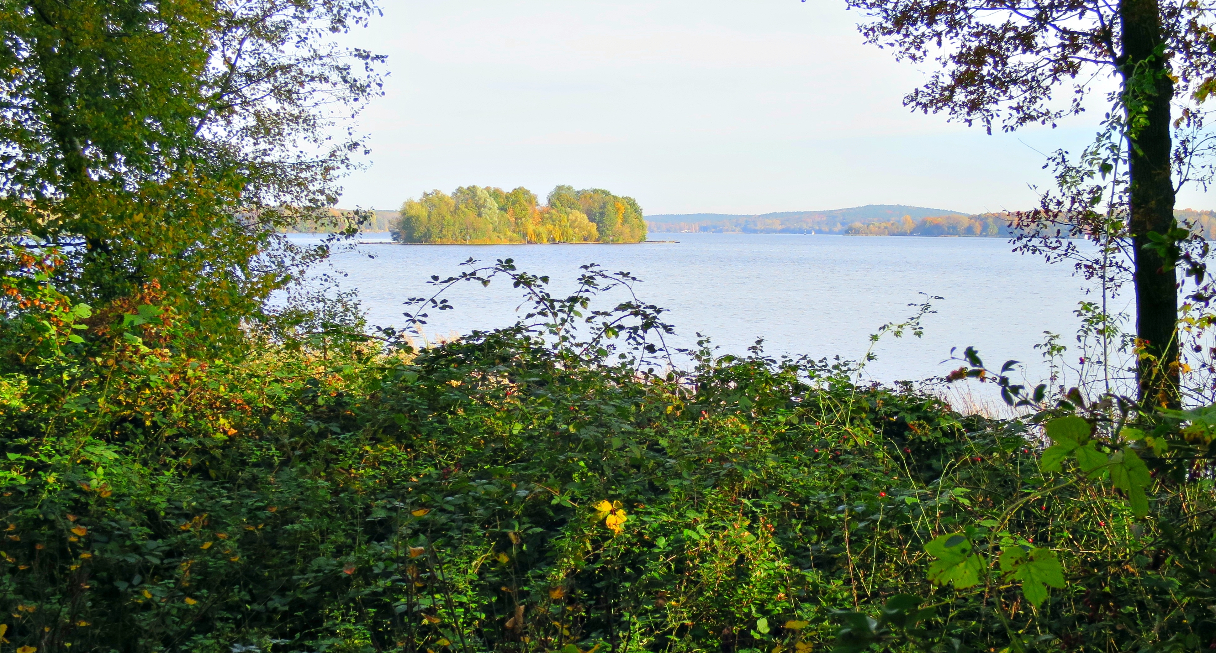 Mehrere großarige Ausblicke zur kleinen Nachbarinsel Kälberwerder sind möglich - im Übersichtsplan die Punkte 21 -