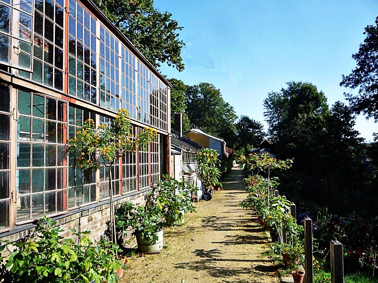 Die Gärtnerei mit ihrem großen Treibhaus ist die Wiege für das natürlich-kunstvolle üppige Pflanzenwachstum, ist Ursprung für den reichen Flor der Insel - im Übersichtsplan Punkt 32 -.