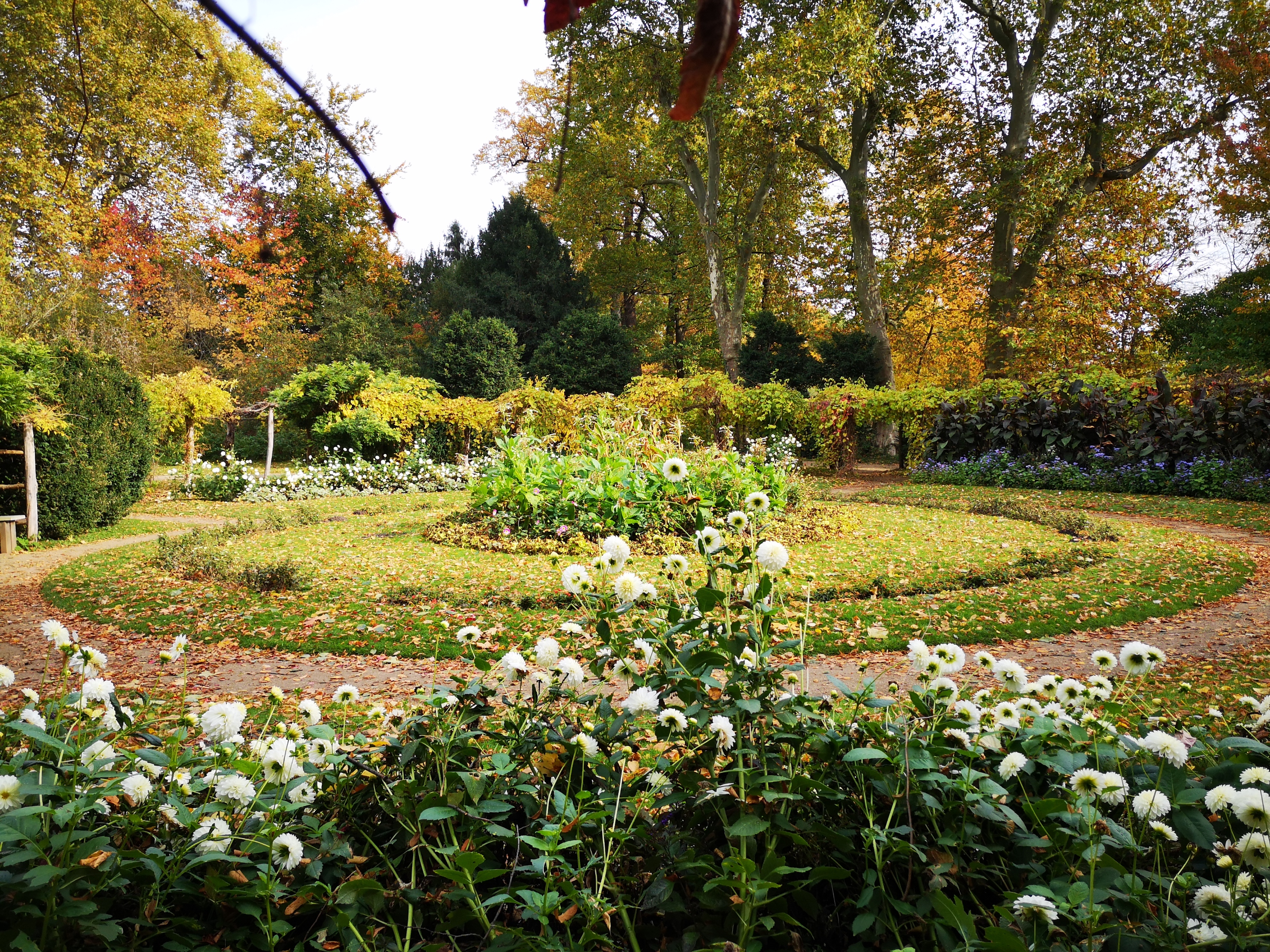 Das runde Beet im runden Garten – alles 1821 / 1822 vom Hofgärtner Ferdinand Fintelmann gestaltet. - Im Übersichtsplan Punkt 07 -. Es waren auf der Insel unter den ersten Hofgärtnern tätig: Ferdinand Fintelmann (1774–1863) und sein Neffe Gustav Adolph Fintelmann (1803–1871) als Mitarbeiter und dann Nachfolger des Erstgenannten ab 1834.