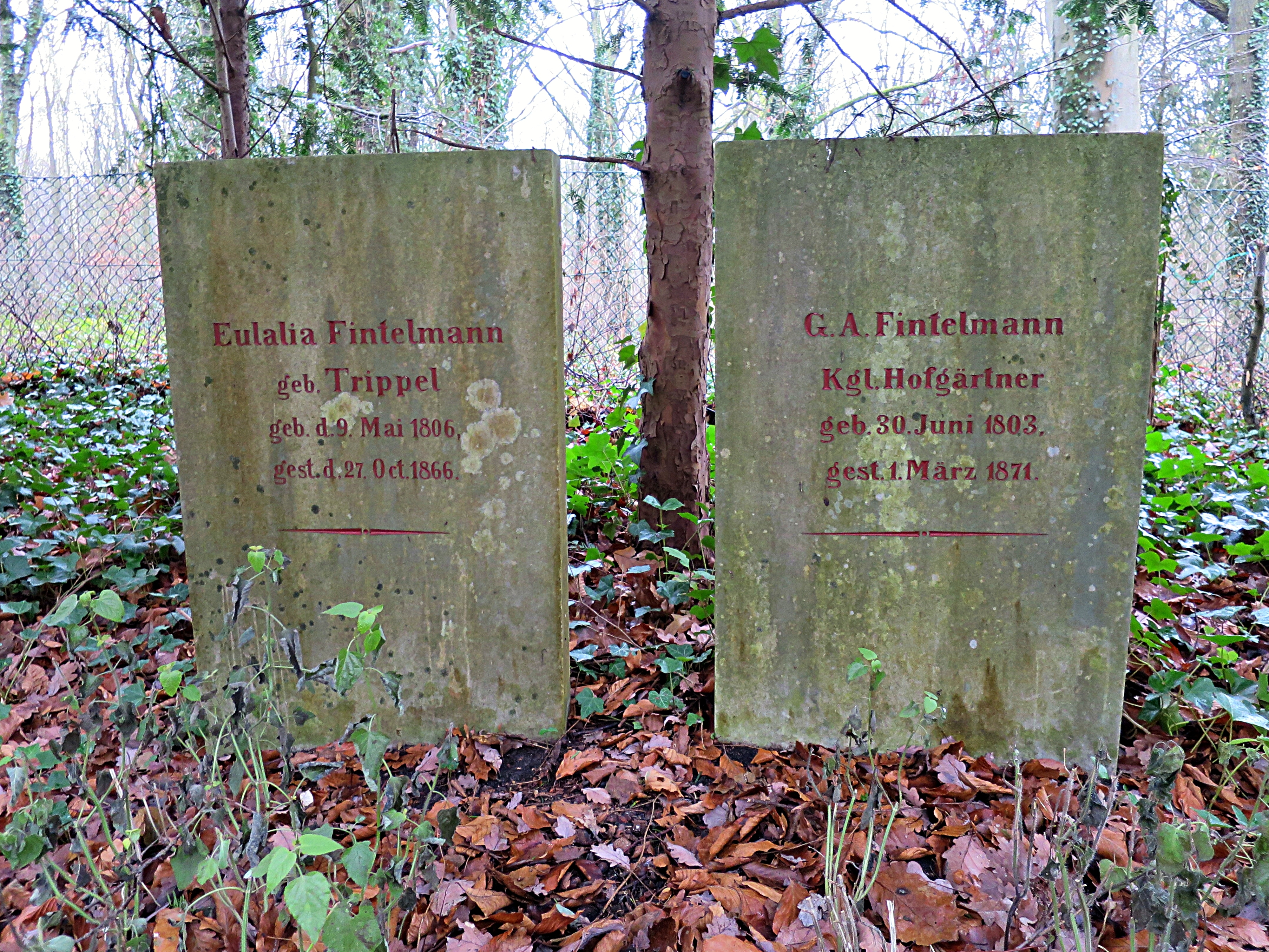 Die Begräbnisstätte des Hofgärtners Gustav Adolf Fintelmann und seiner Ehefrau Eulalia auf Nikolsloe.
