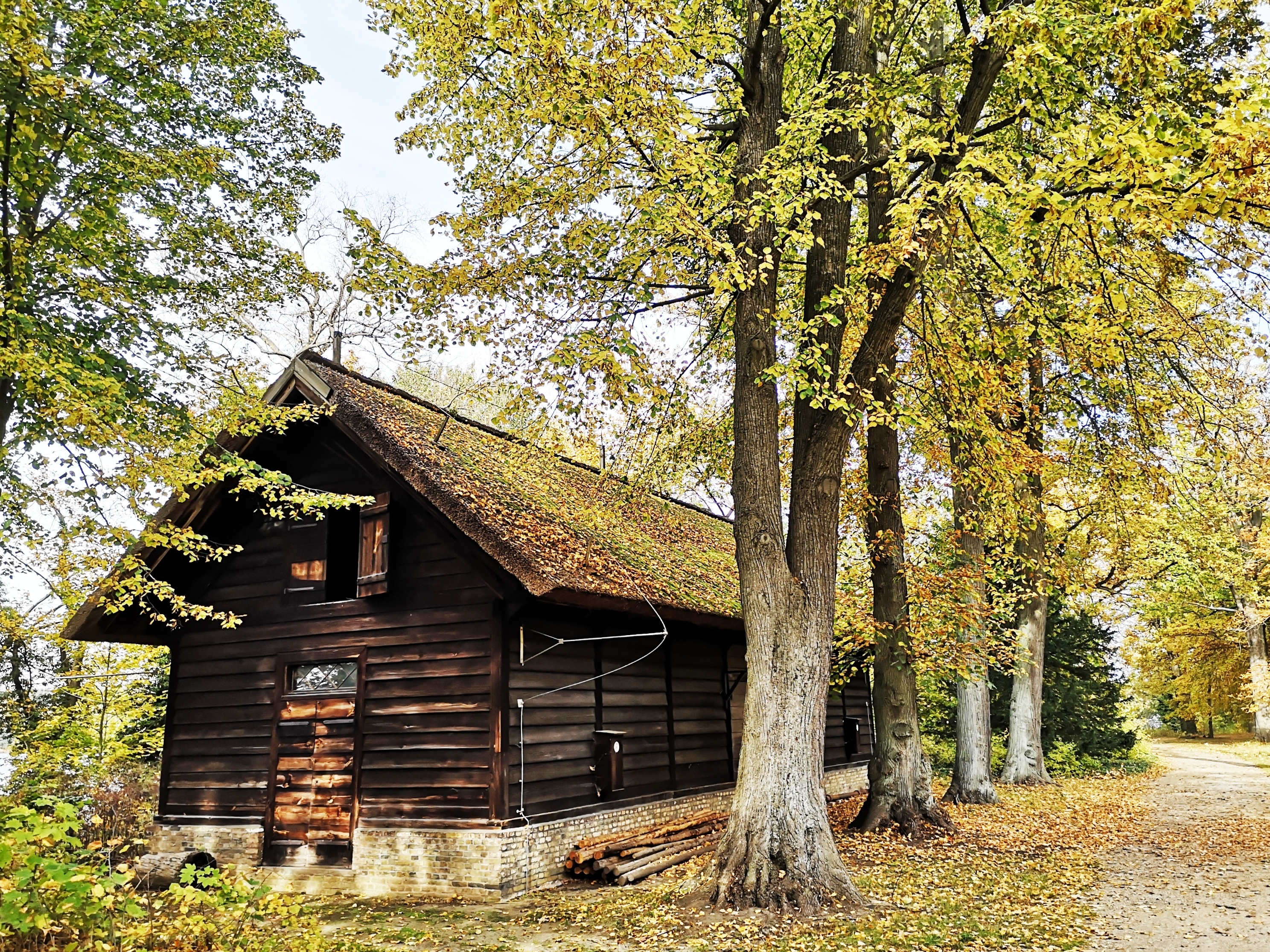 Diese Jagdhütte mit Baumborkenbestückung der Fassaden wird offiziell mit „der Jagdschirm“ bezeichnet - im Übersichtsplan Punkt 25 -. Das Fachwerk-Gebäude mit zwei Etagen stand bis 1796 im Forst nahe bei dem kleinen Landstädtchen Beelitz (Ort der Landesgartenschau 2022). Der König brauchte die Hütte dort nicht mehr, doch sie gefiel ihm trotzdem sehr. So ließ er sie hierher bringen und als eines der Inselschmuckstücke wieder aufbauen. Im Untergeschoss zur Wasserseite sind die Schießstände, der so genannte „Anstand“, um wilde Wasservögel aus sicherer Ferne ihres Lebens zu entledigen. (Der Autor weiß nicht, was das Totschießen unschuldiger Vögel mit Anstand zu tun hat.) In der oberen Etage dagegen der elegante Gesellschaftsraum für gar manche Lustbarkeit sorglosen Lebens.