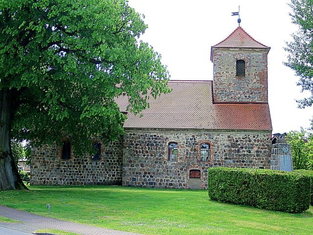 Die schattige Nordseite der Garzauer Kirche, davor eine Gedenk- oder auch Mahn-Säule, die an die Sinnlosigkeit der Kriege erinnert und damit an viel Leid. Aufgeführt sind jene Soldaten, die aus den Scharmützeln nicht mehr lebend zu ihren Familien zurückkehrten. „Sie gaben ihr Leben auf dem Felde der Ehre für König, Volk und Vaterland“ ... wurde gern offiziell gesagt und schon sind wir in Verdrehungen der Geschichte verstrickt. Manch ein Betrachter sieht in der Denkmalbekrönung einen „schützenden“ preußischen Adler, der dieser Aufgabe nicht gewachsen war oder dieser nicht gerecht wurde, ein anderer wünscht sich eher eine Friedenstaube – nicht nur über Gräbern und auf Denkmälern, sondern im pulsierenden Leben, zeitlich schon weit, weitaus früher. –