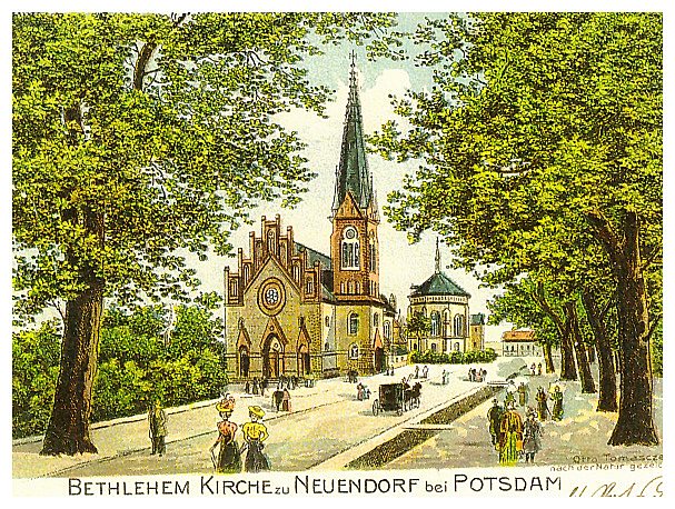 Die Bethlehemkirche auf dem Neuendorfer Anger wurde 1898–1899 errichtet und 1899 geweiht, im achten Amtsjahr des Pastors.
