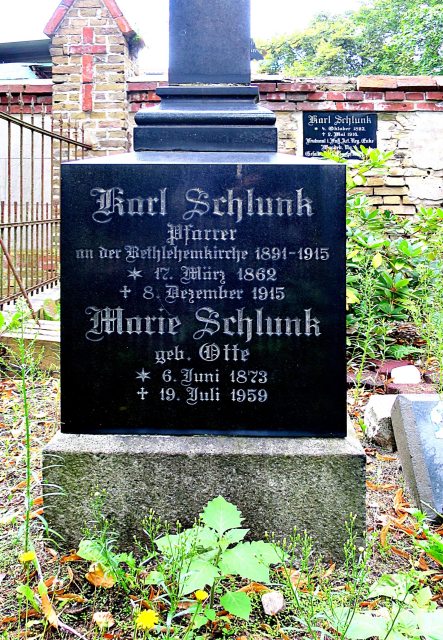 Die Familie Schlunk wohnte im Haus Bethlehemkirchplatz 1 => nach 1945 Neuendorfer Anger.