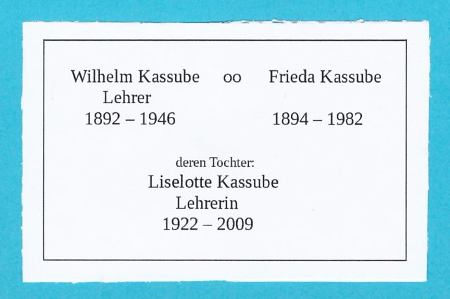 Das Ehepaar Kassube und ihre Tochter Liselotte, eine sehr beliebte Lehrerin, die in der Schulstraße 11 lebte.