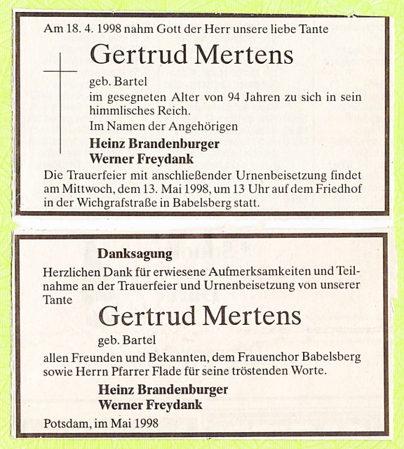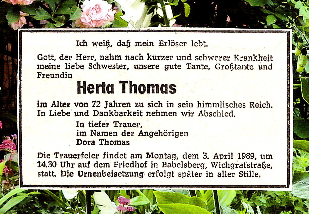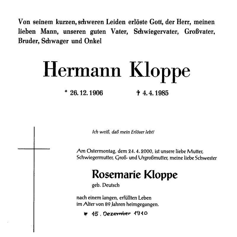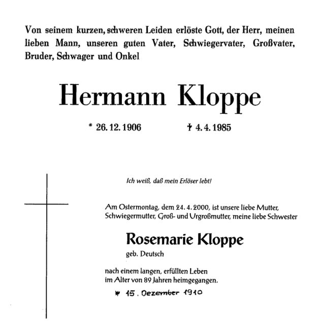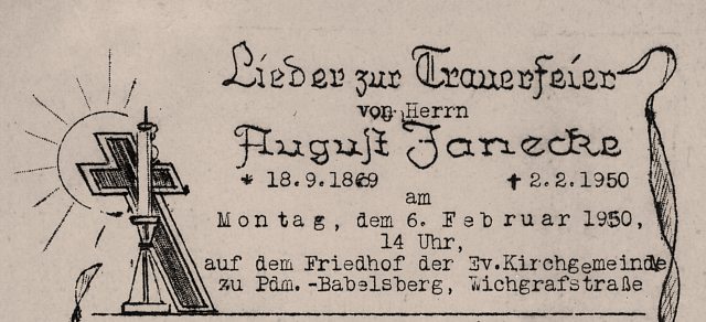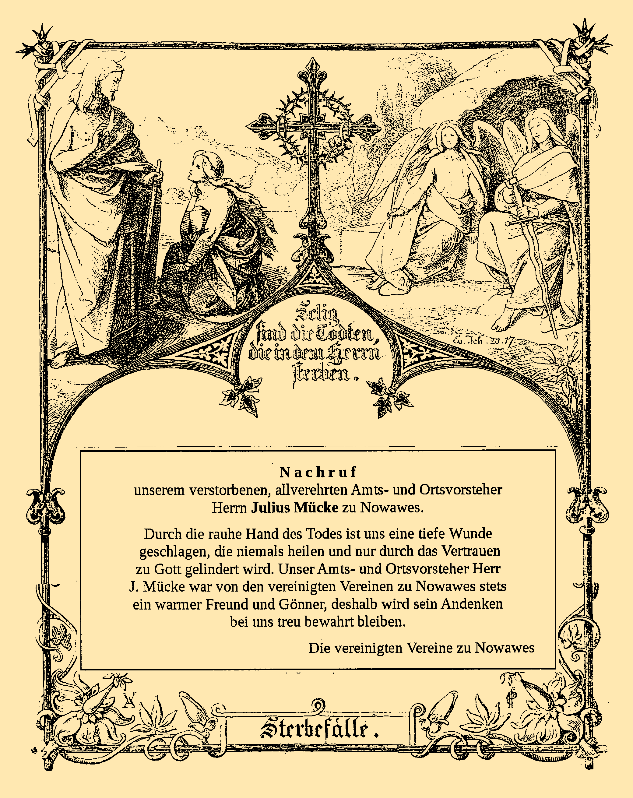 - bereits mit damaligen Zeitungsanzeigen oder dem Aufstellen eines Grabdenkmals wurde der Sterbefall der Öffentlichkeit auf Jahrzehnte hinaus bekanntgegeben. Hier wird diese Bekanntgabe in den ausgewählten Beispielen lediglich kostenlos verlängert – bewahrt.