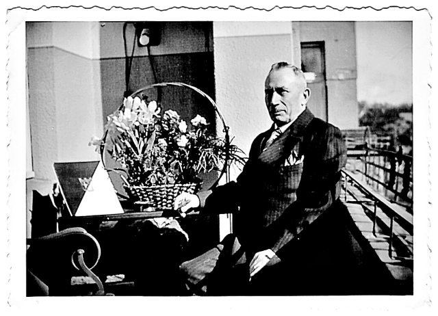 Der Geehrte im Frühjahr 1938 auf dem Balkon seiner Wohnung in der Priesterstraße 57a, die er mit Frau Betty gemeinsam bewohnte.