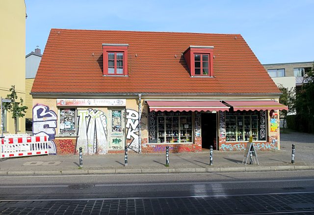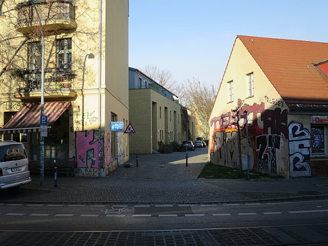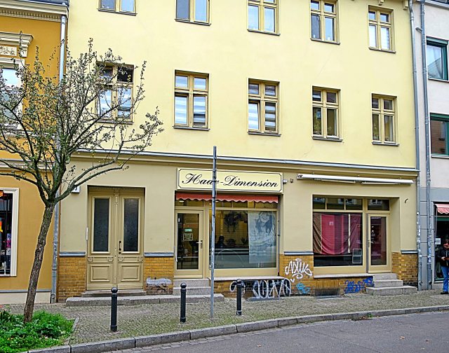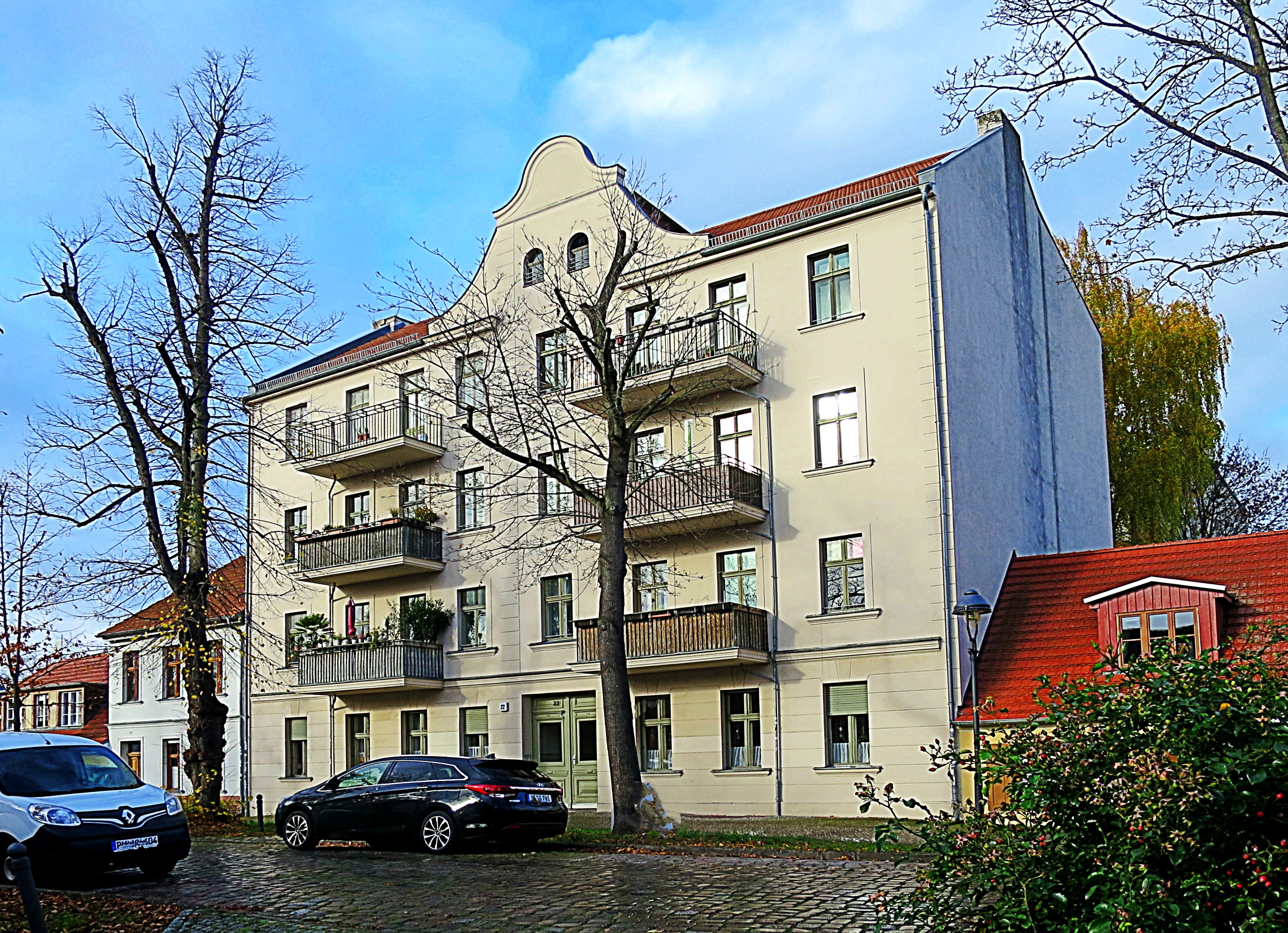 Alt Nowawes. Zeitweilig bestanden hier im Hofgelände Werkstatt und Verkauf von Leisten, Latten, speziell angefertigten Gardinenstangen und anderen Nützlichkeiten mehr.