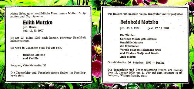 Die Burtards, Paul, Buchbinder und seine Frau Hildegard, lebten in Neuendorf, Bethlehemkirchplatz => Neuendorfer Anger 3.