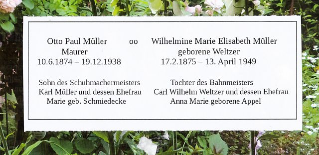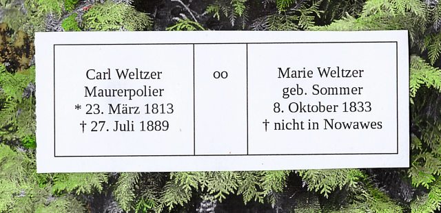 Es ist unsicher, ob Carl Weltzer im Friedgarten an der Wichgrafstraße oder an der Goethestraße bestattet wurde.