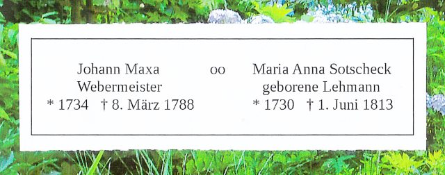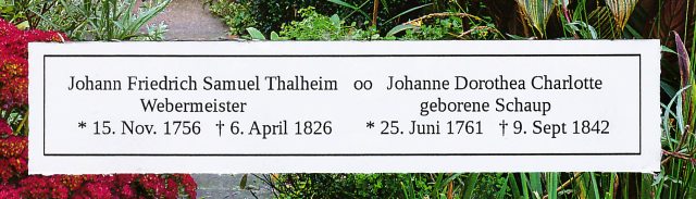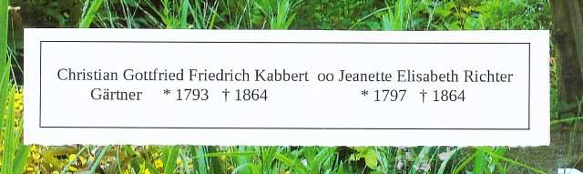 Die Inschriften auf dem Grabmal sind nicht mehr lesbar. Aus diesem Grund wurden die Angaben im nachstehenden Bild „frisch nachgestaltet“, um das Andenken fortdauernd wahren zu können.