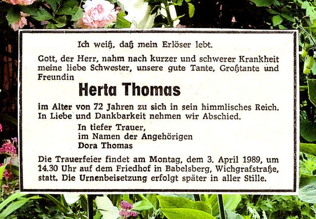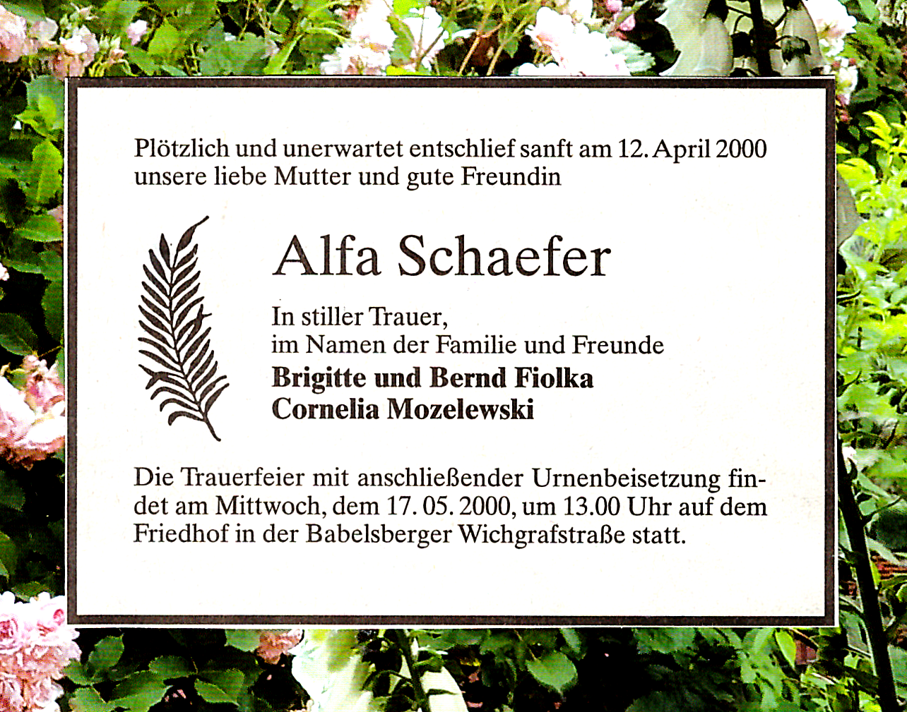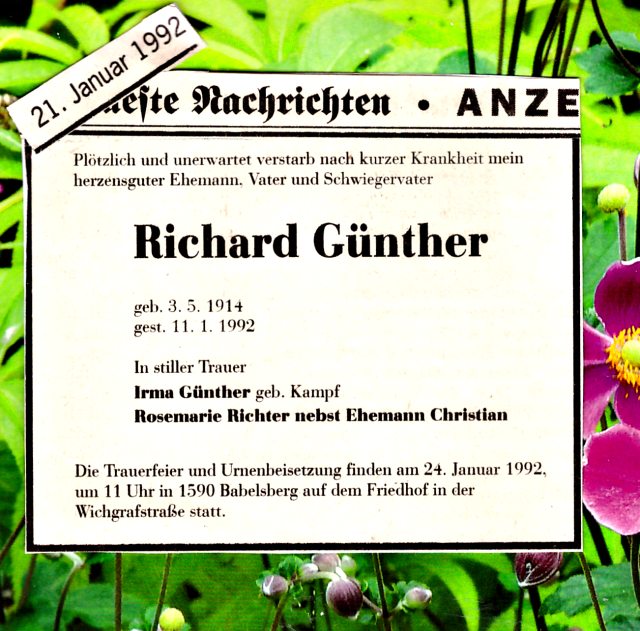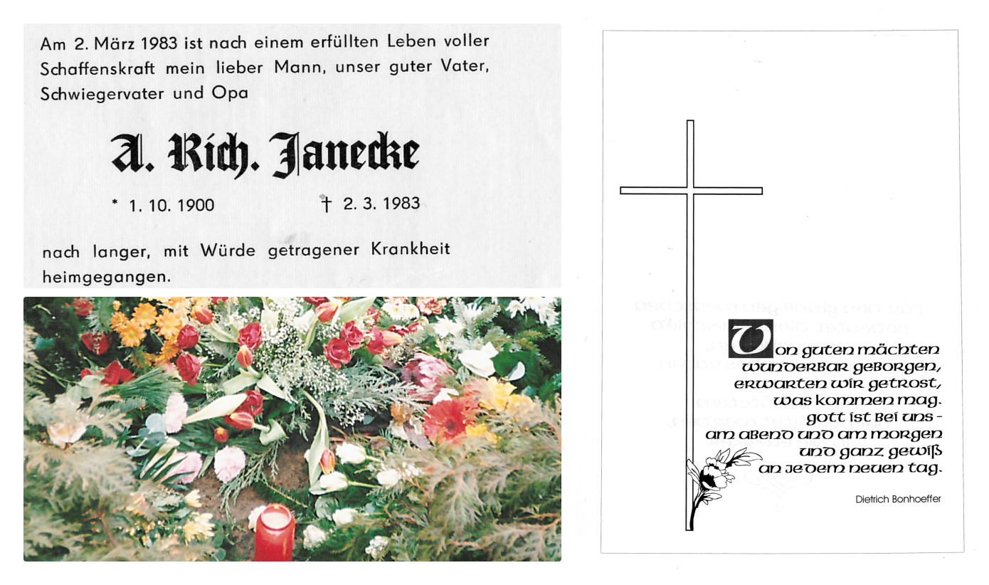 Trotzdem habe ich auf das Abbilden jüngerer Grabstellen, die von Angehörigen noch intensiv gepflegt werden, verzichtet. – - In vielen Orten ist es Sitte, dass nach dem Ableben – Angehörige und auch Freunde oder Bekannte des Gestorbenen, einen persönlichen Beitrag schreiben, einen „Nachruf“ zumeist wohlwollender Art verfassen, der in Zeitungen erscheint. Auch das ist gut möglich, zulässig und in Ordnung. –