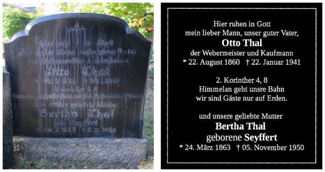 Thal. Otto oo Bertha. Textilwarengeschäft in der Lindenstraße 42 => Rudolf-Breitscheid-Straße.