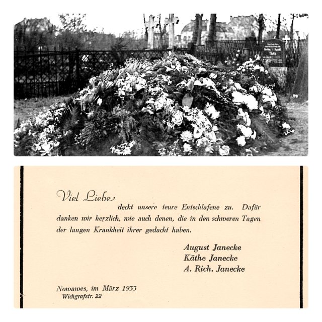 Klara Janecke geb. Dittwaldt und August Janecke aus der Wichgrafstraße 22, parterre rechts. – Fotos zur Silberhochzeit am 15. September 1921. Klara 48 Jahre jung, August 52 Jahre alt.