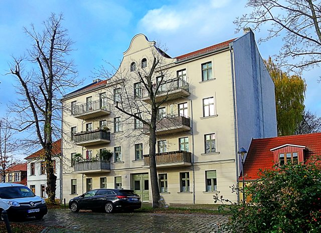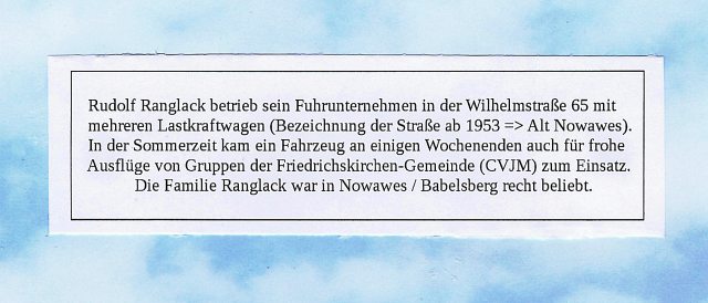 Die Bebauung des Ranglack-Grundstück, Alt Nowawes 65, ist inzwischen völlig verändert. Wir aber wissen ja, wie auch dieser Straßenabschnitt ursprünglich aussah – bebaut mit Kolonistenhäusern.