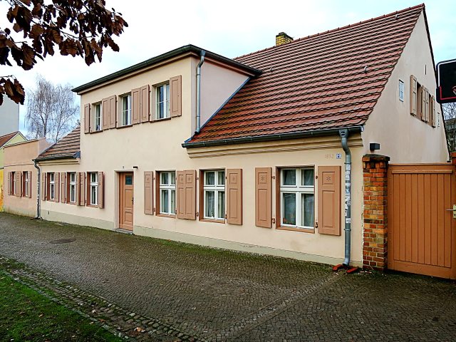 Kurt Pilz wohnte in der Ernst-Thälmann-Str. 24 (die Straße hieß bis 1945 und nach 1990 Großbeeren-Straße). Links daneben seine Tischlerwerkstatt. Das Grundstück ist jedoch neu bebaut – von der Tischlerei nichts mehr zu sehen..