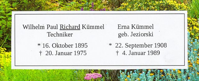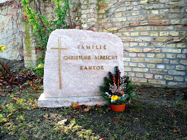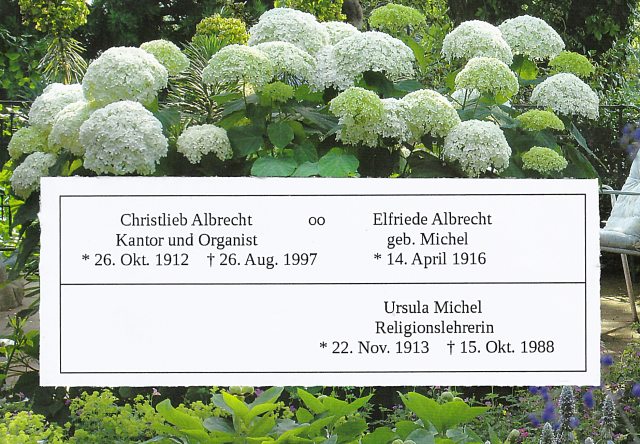 Gedenkstein für Christlieb Hermann Albert Karl Albrecht (﹡ 26. Oktober 1912, † 26. August 1997) und seine Ehefrau Elfriede Elisabeth geb. Michel.