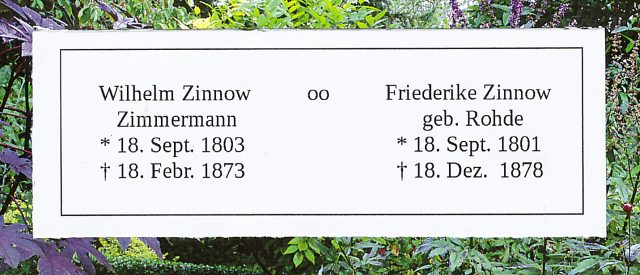 Das Ehepaar August Wichgraf (23.6.1811–2.5.1901) und seine Ehefrau Wilhelmine (genannt Minna) geborene Wilckens (24.9.1824–7.11.1890).