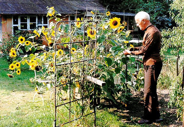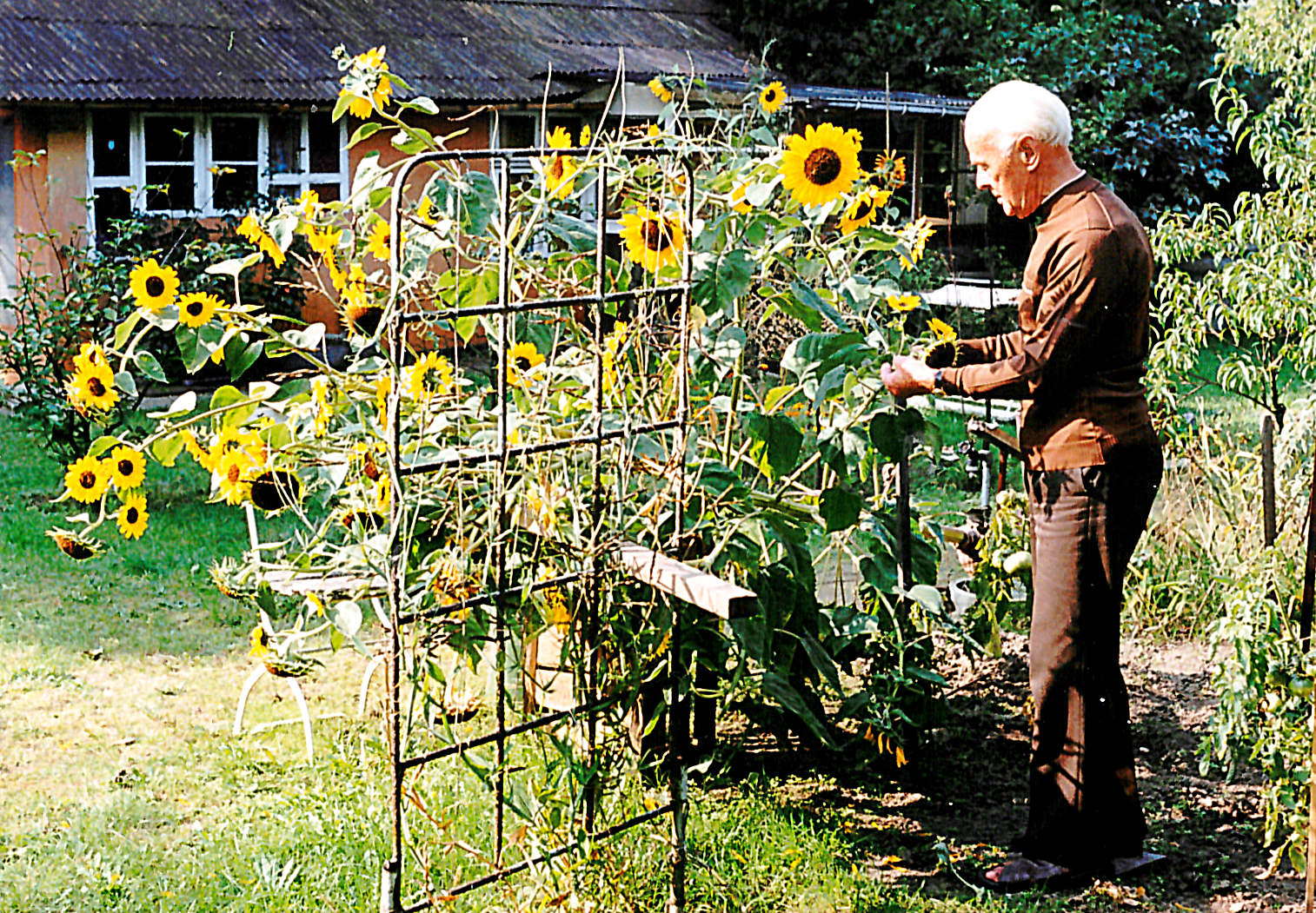 Werner Letz in seinem Garten, Rosenstraße 11. Ein Leben lang aktiver Mitarbeiter in der Kirchengemeinde.