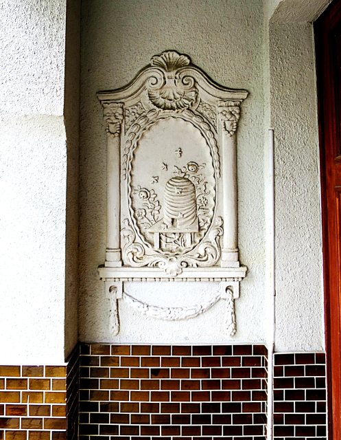 Wilhelm Adlung wohnte in dem großen Miethaus Priesterstraße 27 => Karl-Liebknecht-Straße 32. Das Relief im Hauseingang stellt den Bienenfleiß der Bewohner ... oder schon vorher – die Emsigkeit der Bauleute dar. Ein vergleichbares Motiv finden wir auch am Haus Priesterstraße 19 => Karl-Liebknecht-Straße 24.