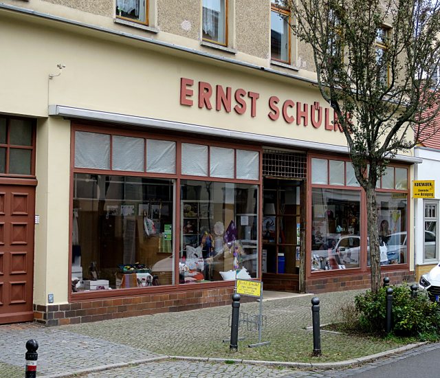 Rundfunk- und Musikaliengeschäft Tauschel in der Rudolf-Breitscheid-Straße 44. Zu jener Zeit, als er das Geschäft führte, waren unsinnige eigentumsbeschädigende Farbsprühereien noch unbekannt.
