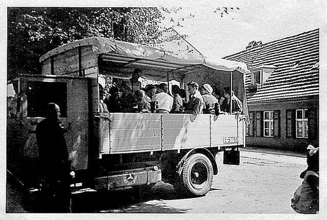 Der Mercedes-Lastwagen von und mit Rudolf Ranglack – „heute“, im Sommer 1935, auf einem Wochenend-Ausflug ehrenamtlich tätiger Glieder der Kirchengemeinde, von Nowawes nach Rheinsberg und zurück.