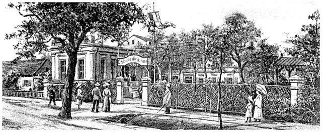 Das prächtige Wohn- und Geschäftshaus der Gerickes, mit der Tischlerei im vormaligen Gartengelände (heute ein Hotel). Priesterstraße 19 => Karl-Liebknecht-Straße 24.