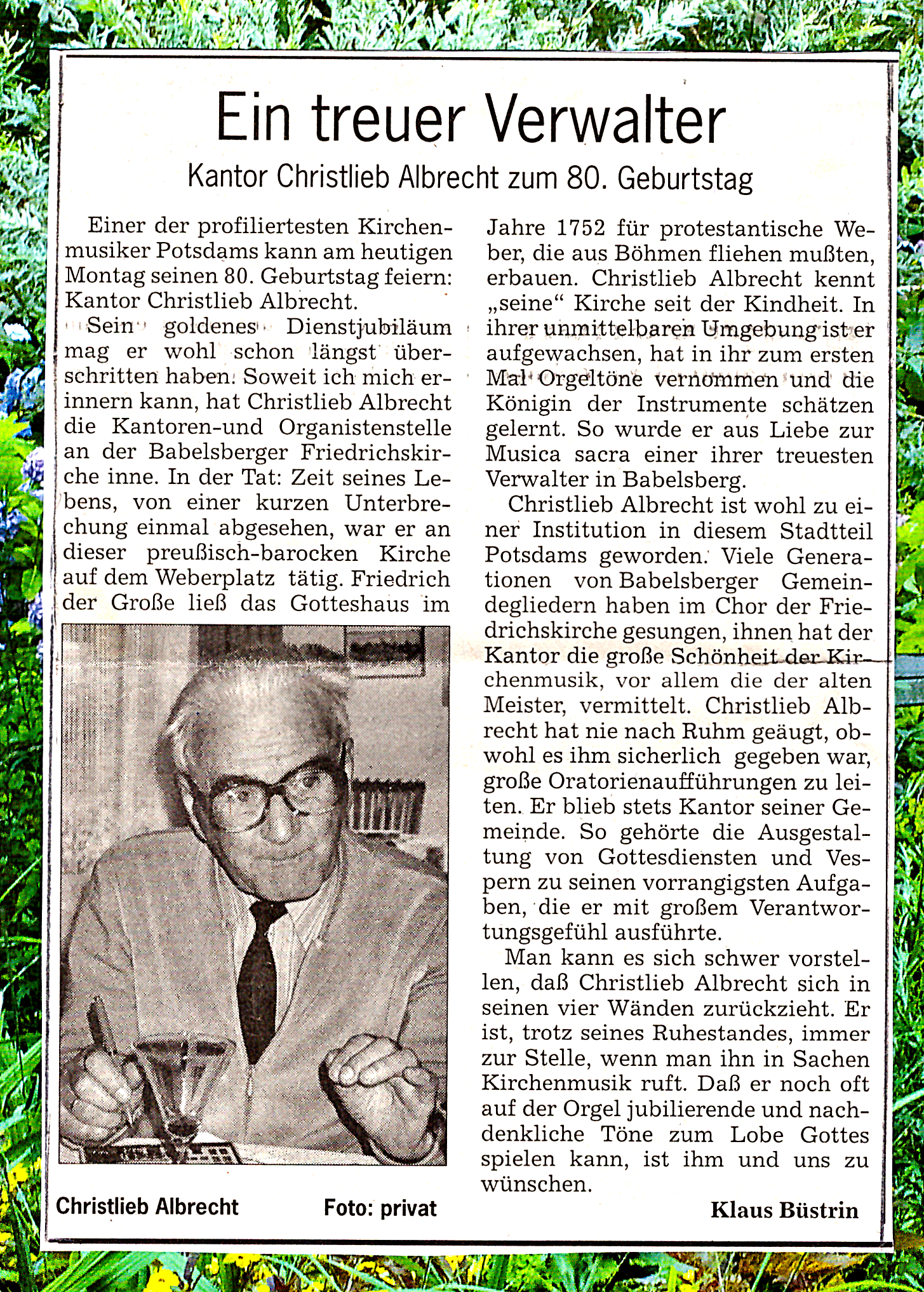 Christlieb Albrecht begeht seinen 80. Geburtstag am 26. Oktober 1992.