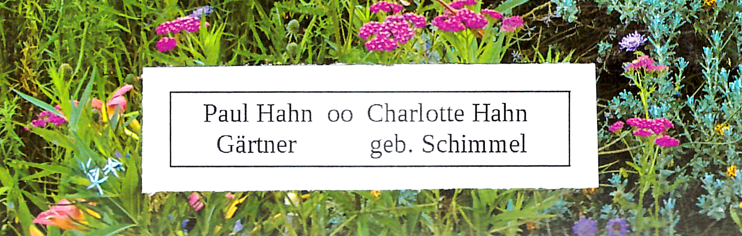 Familie Schilde. Gartenbaubetrieb mit Blumenverkaufs-Geschäft in der Lindenstraße gegenüber dem Bahnhof => seit 1945 Rudolf-Breitscheid-Straße 43, manchmal auch als 42a erwähnt..