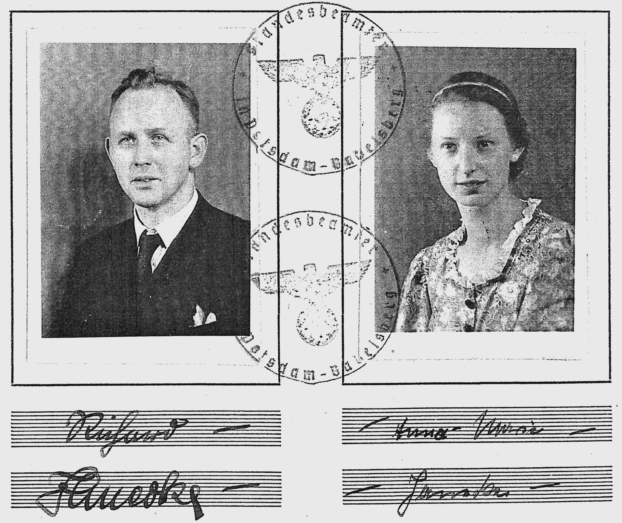 Elisabeth Hasse, geb. Reichmuth (Pfarrerstochter aus Potsdam, aus dem Hause Kirchstraße 4) mit Ehemann Benno Viktor Hasse, im Jahre 1941.