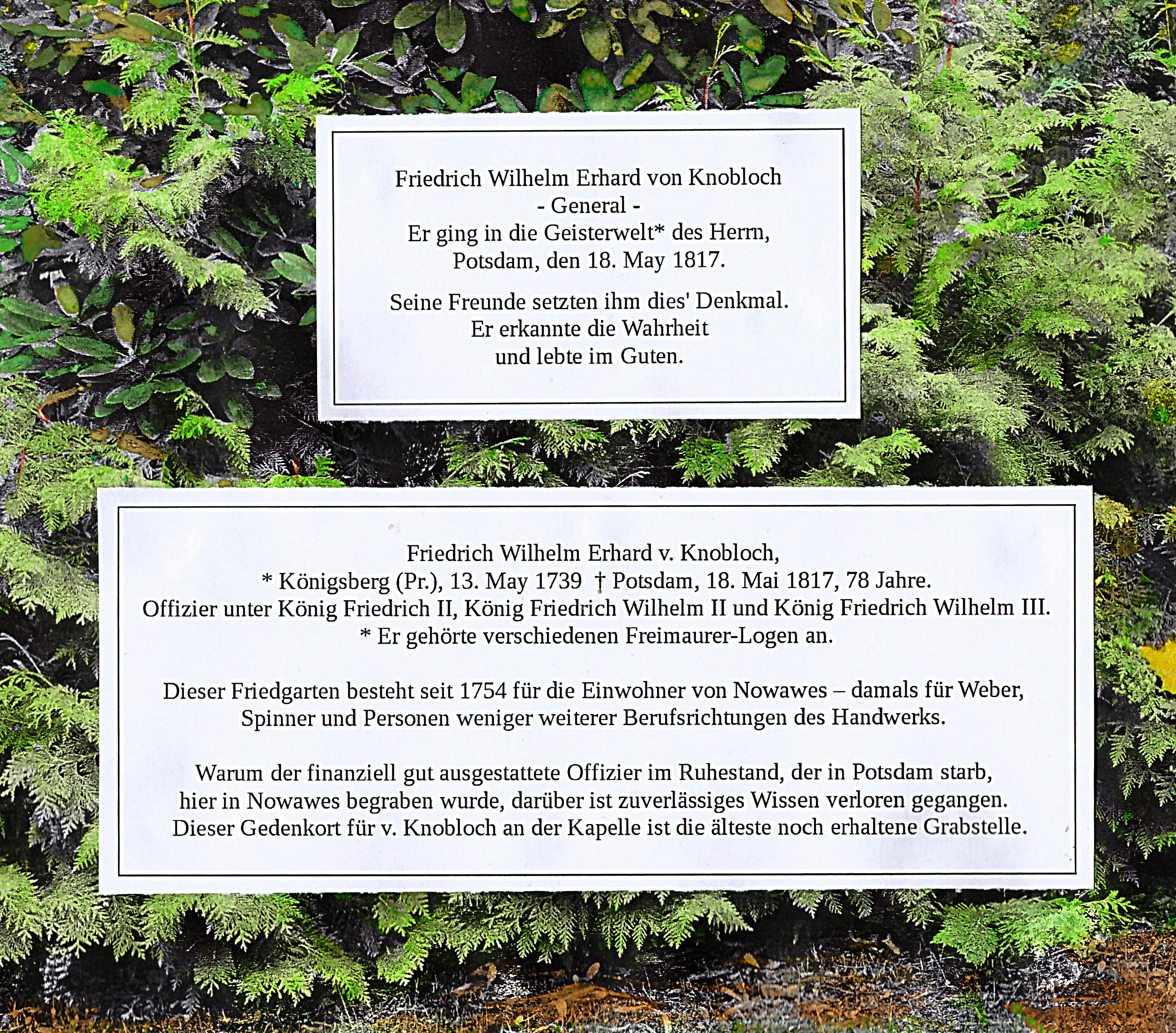 Quellen: Einige Infos aus „Denkwürdige Grabstätten ... “ Mollenhauer 2008, Herausgegeben von der Evangelischen Kirchengemeinde Babelsberg, ferner Kenntnisse aus dem Leben des Autors und dessen Fotos.
