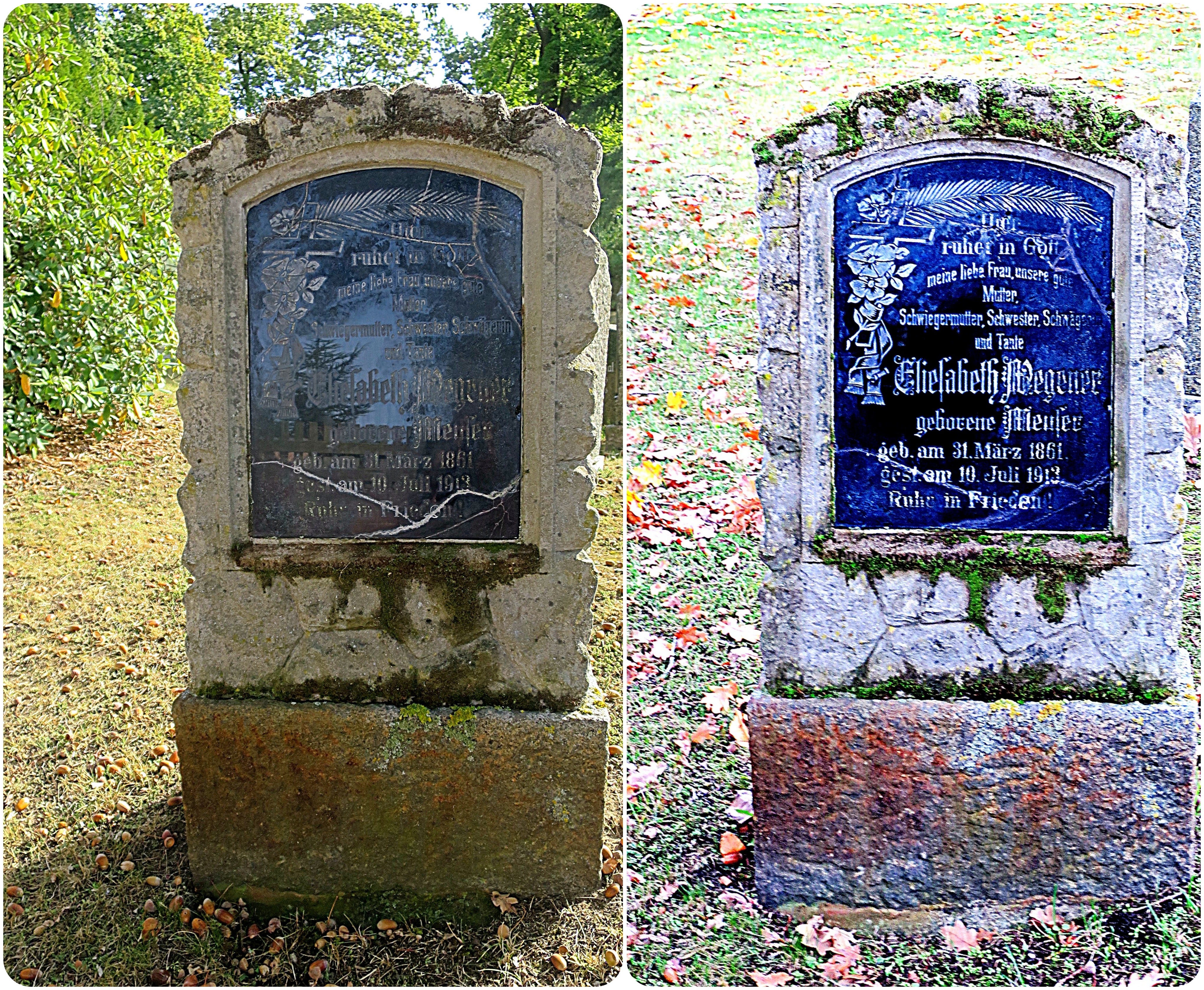 Es schien mir also höchste Zeit „noch einiges vom alten“ zumindest auf dem Bild zu bewahren, in Erinnerung zu halten, in die Zukunft hinüberzuretten, bevor auch diese handwerklich oft aufwendig und kostenintensiv hergestellten Denkmäler entfernt und beispielsweise zu Straßenbaumaterial gebrochen werden.