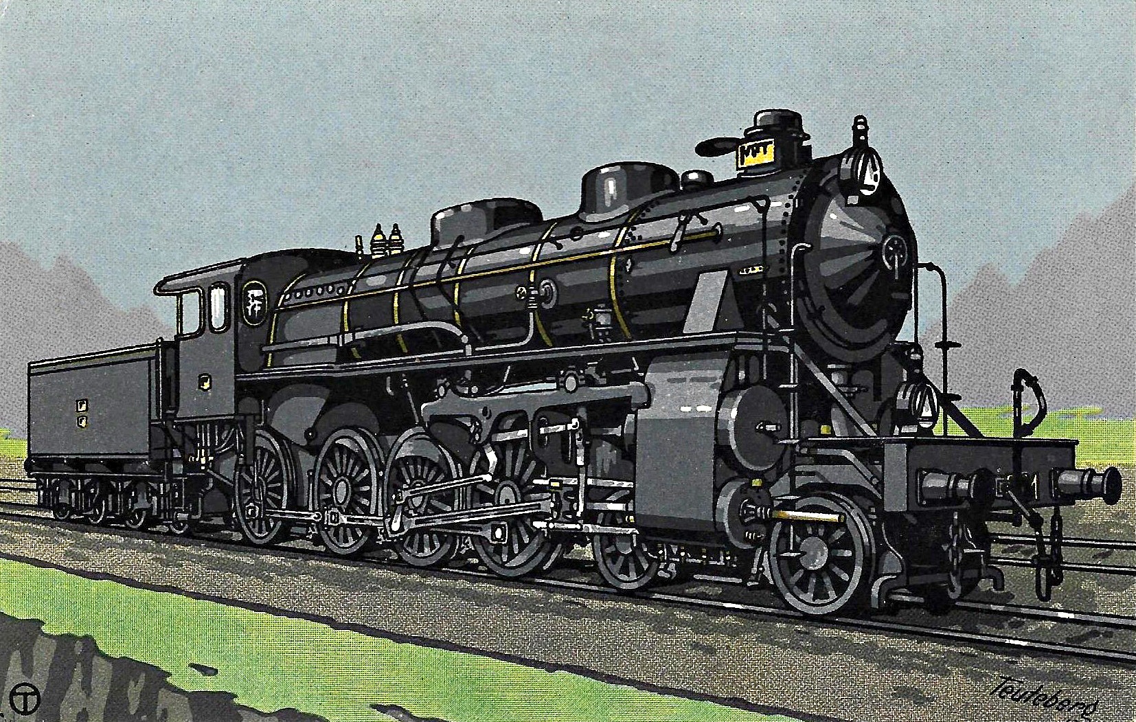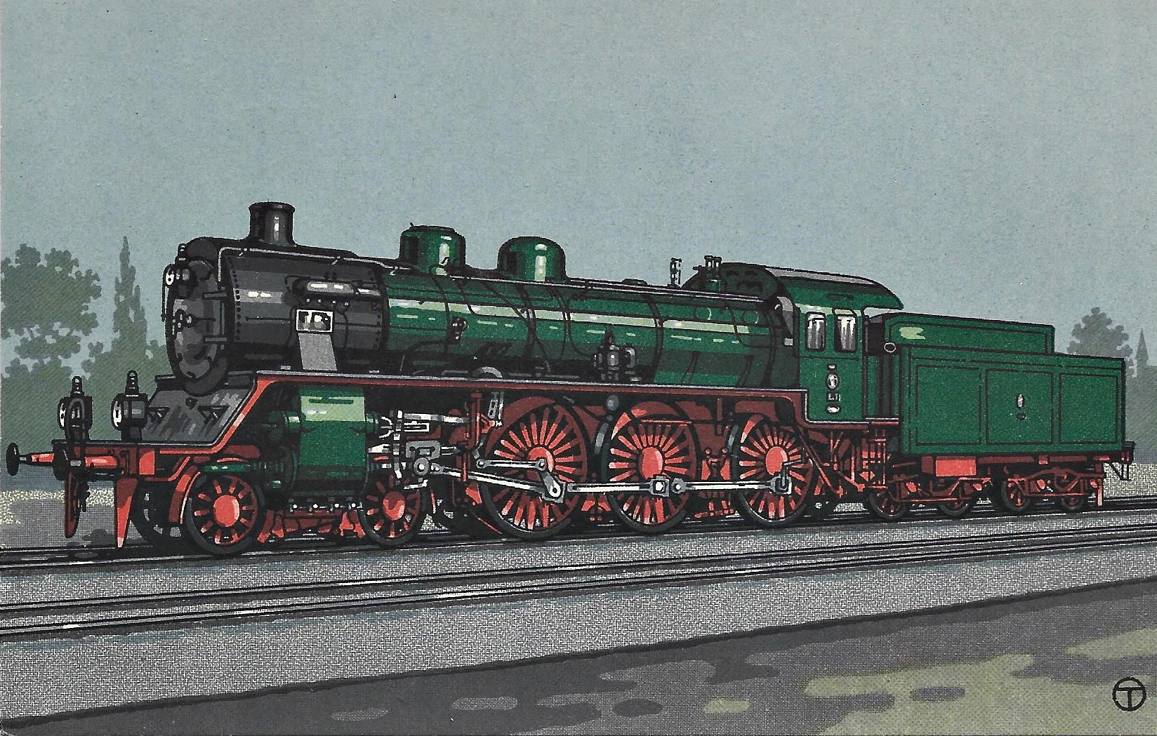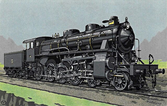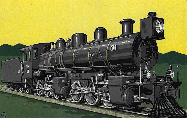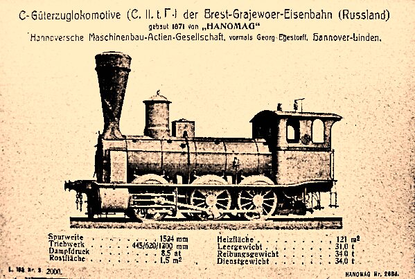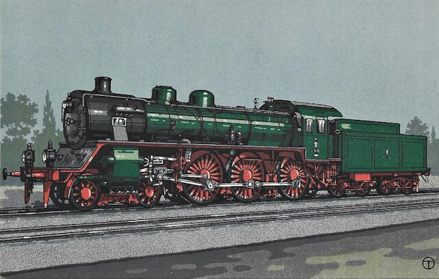 Für die Bulgarische Staatsbahn baute man in Hannover die Vierzylinder-Verbund-Heißdampf-Lok. Quelle: Hanomag-Postkarte Nr. 302.
