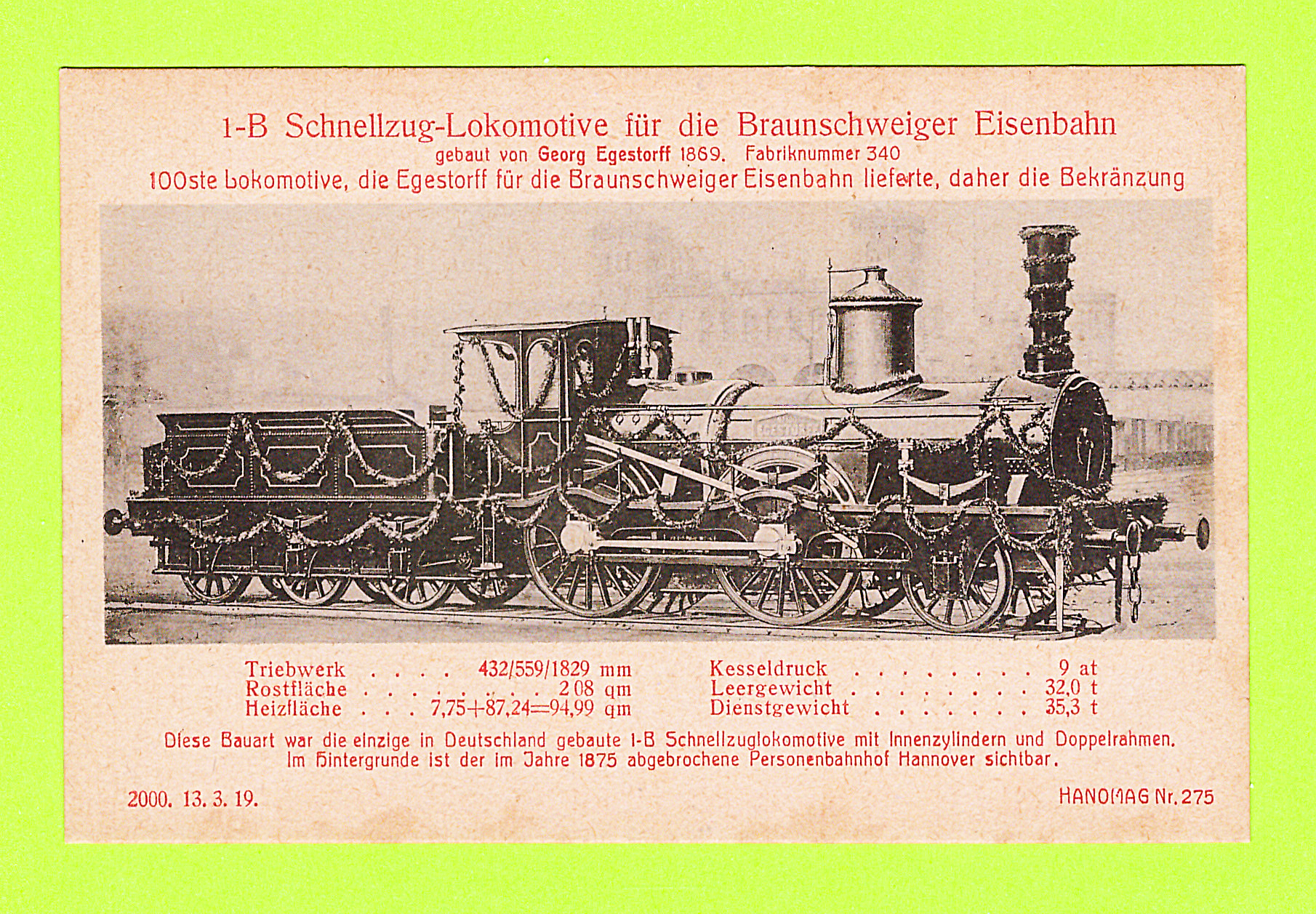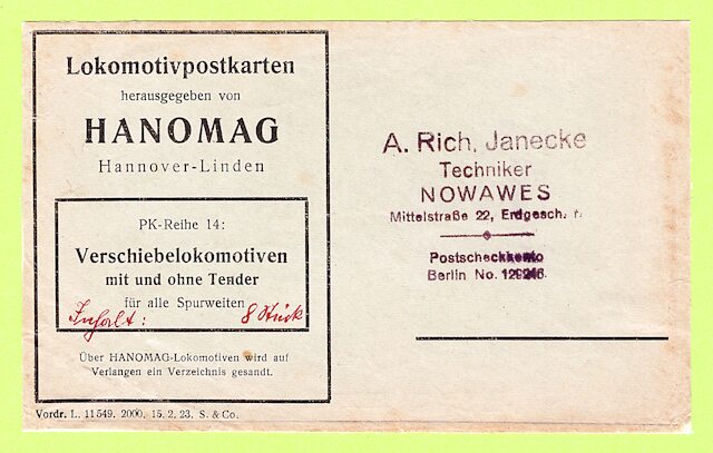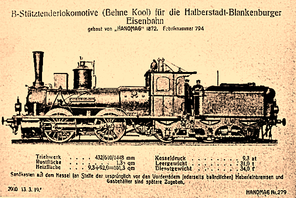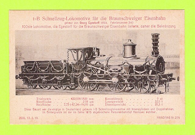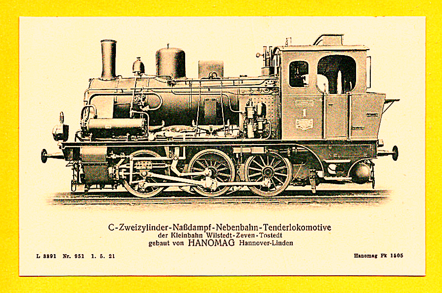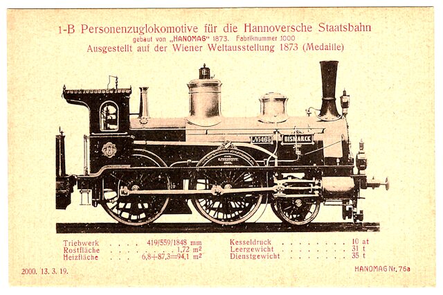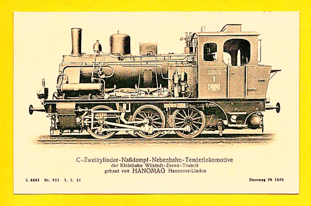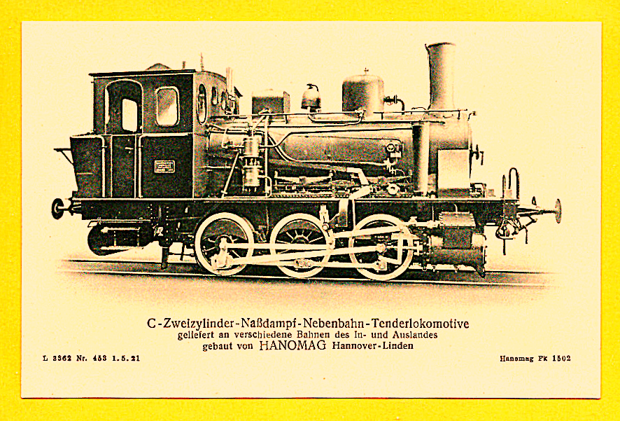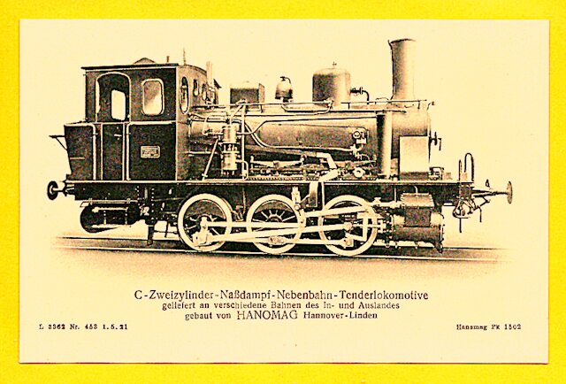 Die nun folgenden sechs farbigen hochwertigen Lokomotivdarstellungen wurden im Auftrag der Lokomotivbaufirma Hanomag, vom Künstler Herrn Teuteberg, gezeichnet und coloriert. Der Farbdruck erfolgte in der Geschäftsbücherfabrik >Edler Krische< in Hannover.