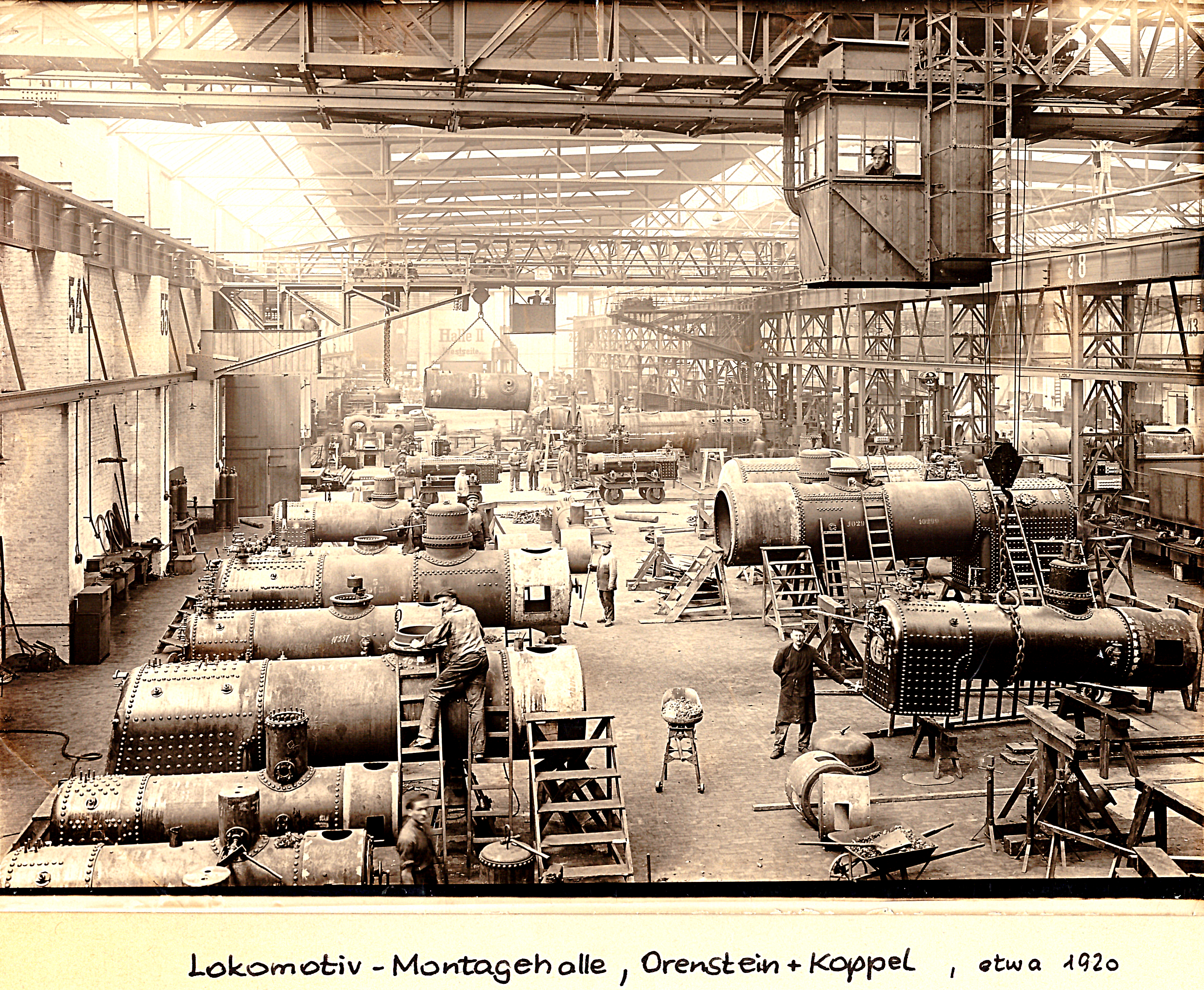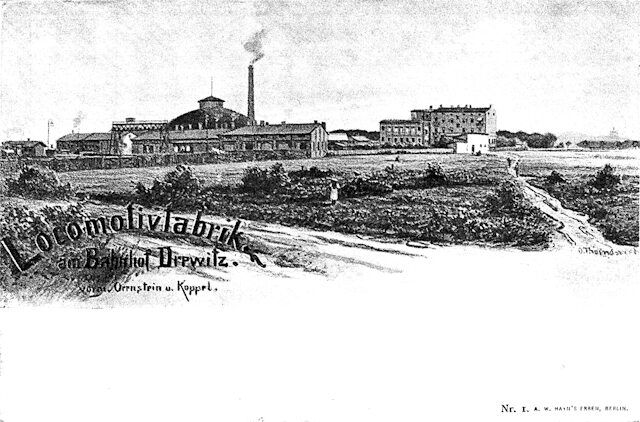 1945: In den 45 Jahren von 1899 bis zum Ende des Zweiten Weltkrieges wurden hier etwa 12.965 Lokomotiven produziert. Dazu gehörten auch die großen Einheitslokomotiven der Baureihen 41, 44, 50, 52, 64 in Normalspur von 1.435 mm und Schmalspurkokomotiven in den Spurweiten 600, 700, 750, 762 und 891 mm.