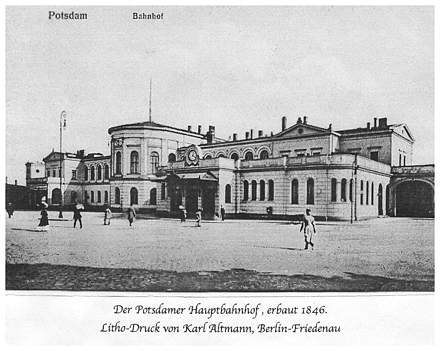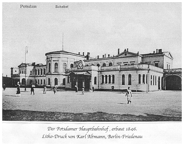 Hier nun die Station am entgegengesetzten Ende dieses Schienenstrangs: Der Bahnhof in Potsdam, der später zum Hauptbahnhof der Stadt wird.