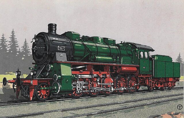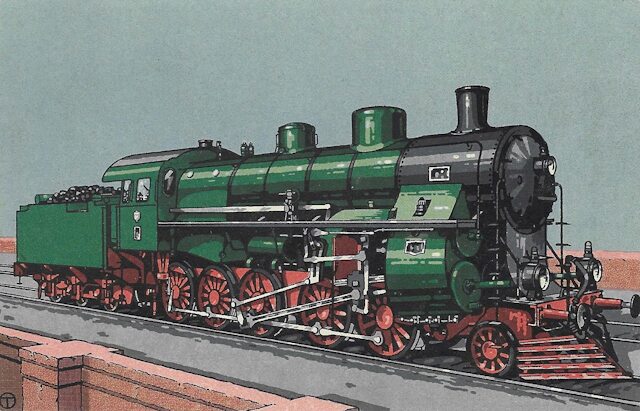 Diese Schnellzug-Lokomotive der Gattung S 10² wurde für die Preußische Staatsbahn konstruiert und gefertigt. Quelle: Hanomag-Postkarte Nr. 301.