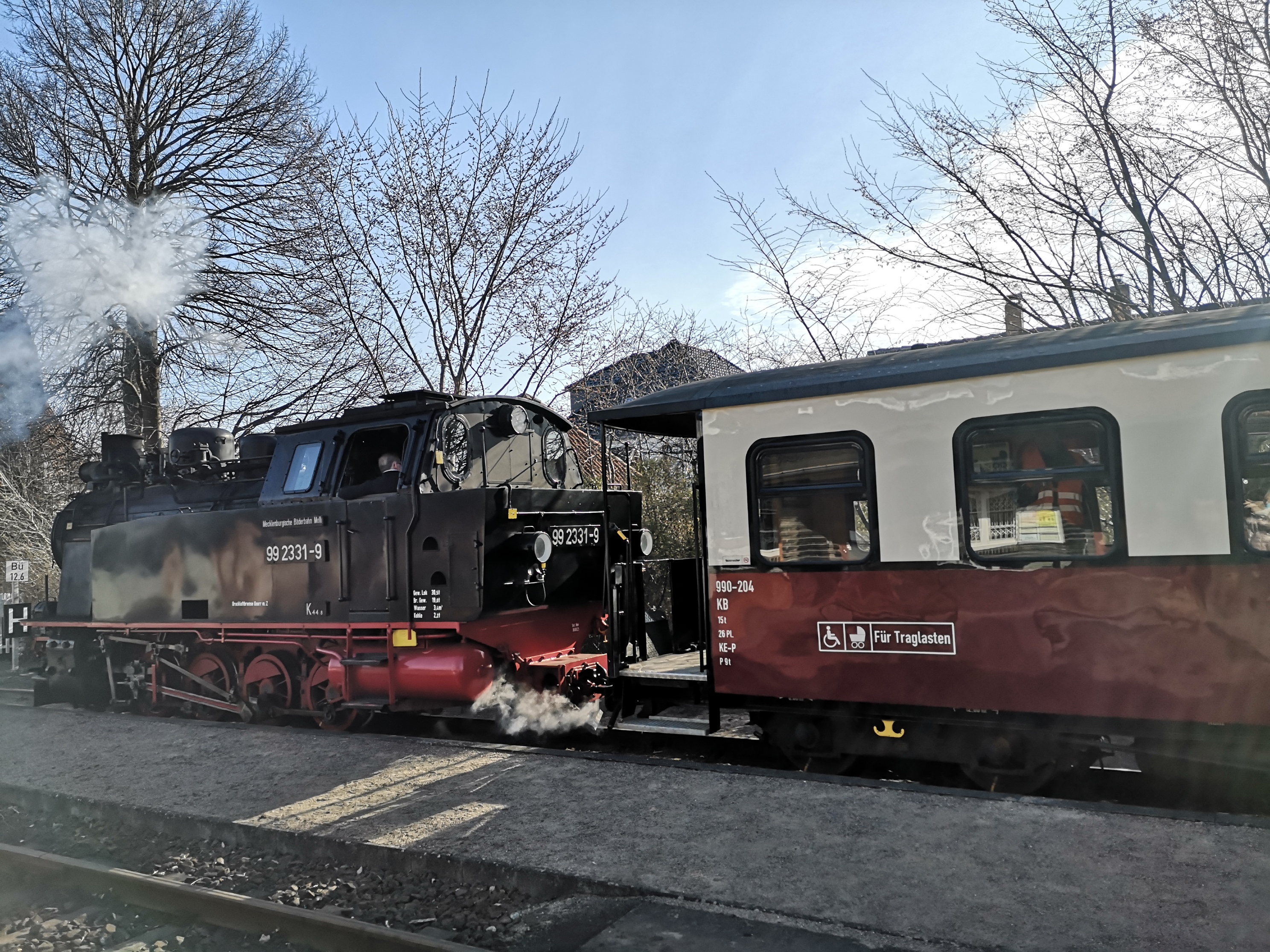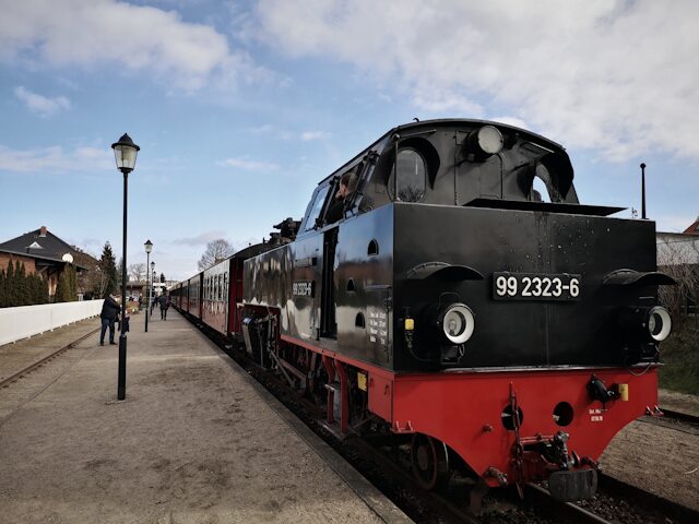 Diese Lokomotive zieht den „Molli“ der Mecklenburgischen Bäderbahn. Der Zug verkehrt zwischen Bad Doberan und Kühlungsborn.