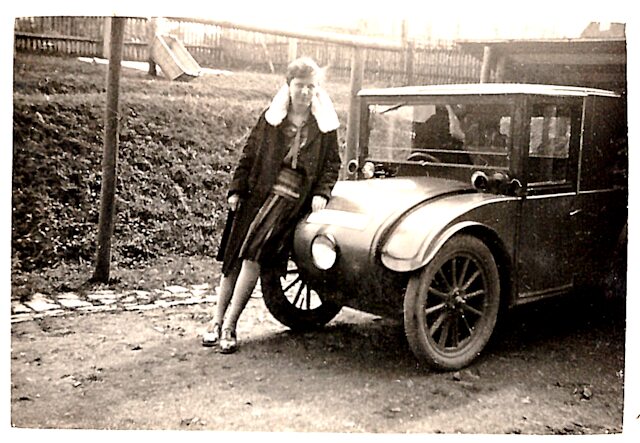 Bildquelle: Fotoarchiv Anne-Marie Sommer. Die abgebildete Person ist die stolze Jungbesitzerin, Fräulein A. Muster, Potsdam.