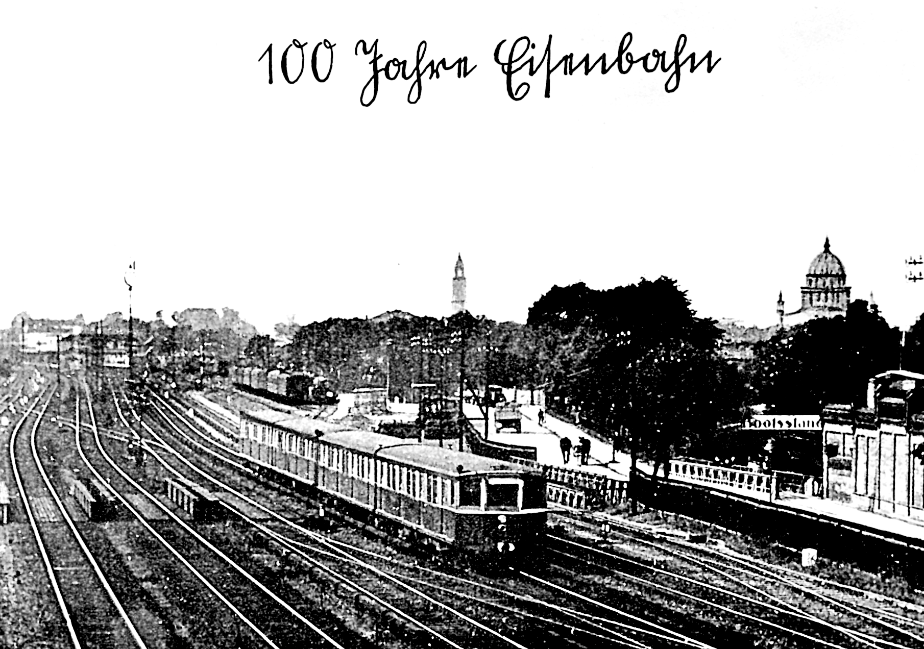 Vor dem Potsdamer Stadtbahnhof. Mittiger Turm: Garnisonkirche, rechter Turm: Nikolaikirche. In reichlich zwei Jahren wird die Sütterlin-Schrift von den Nationalsozialisten verboten werden.