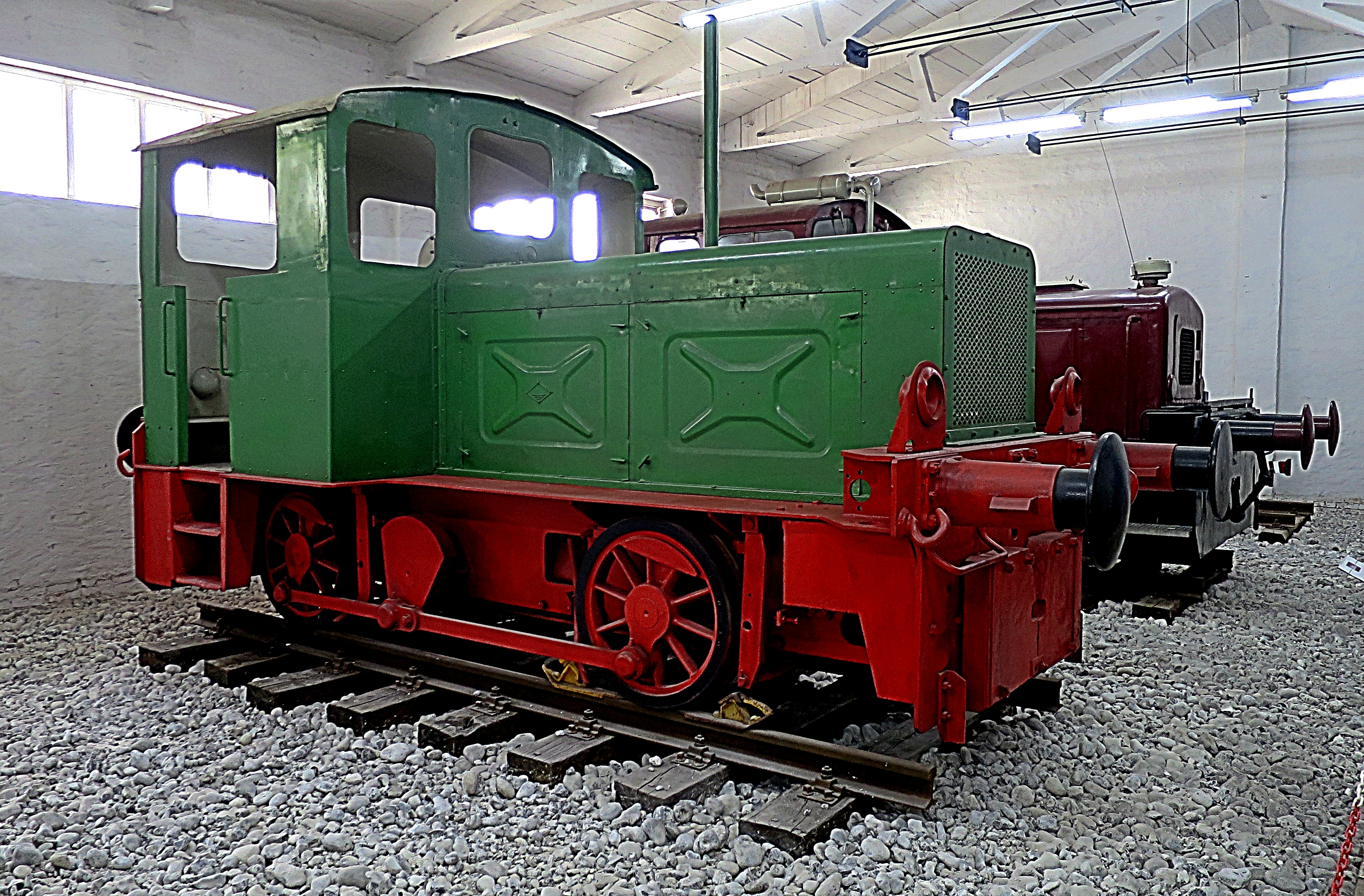 Nun verlassen wir den Sektor der Dampflokomotiven und sehen noch zwei kleine Diesel-Lokomotiven, hauptsächlich im Rangierbetrieb eingesetzt.