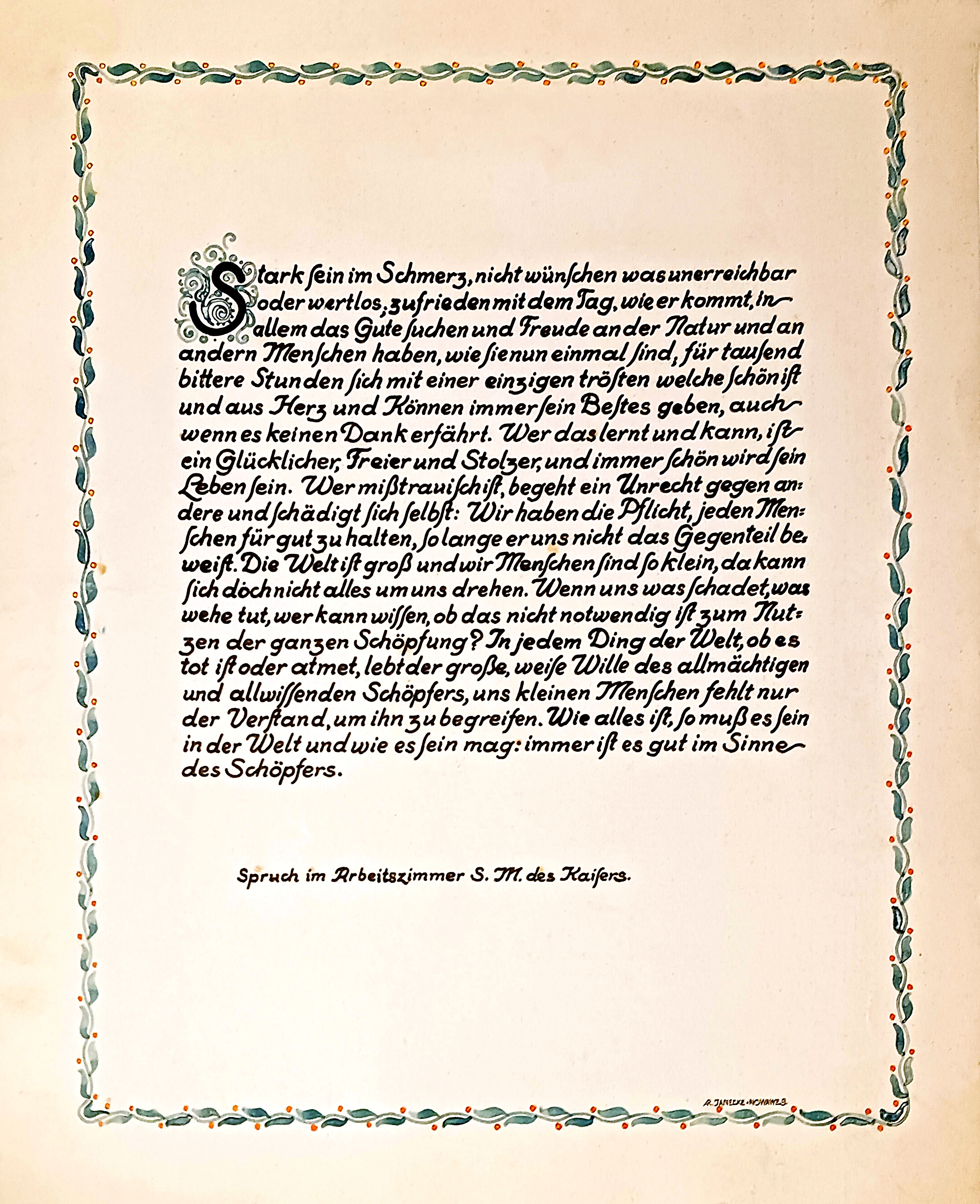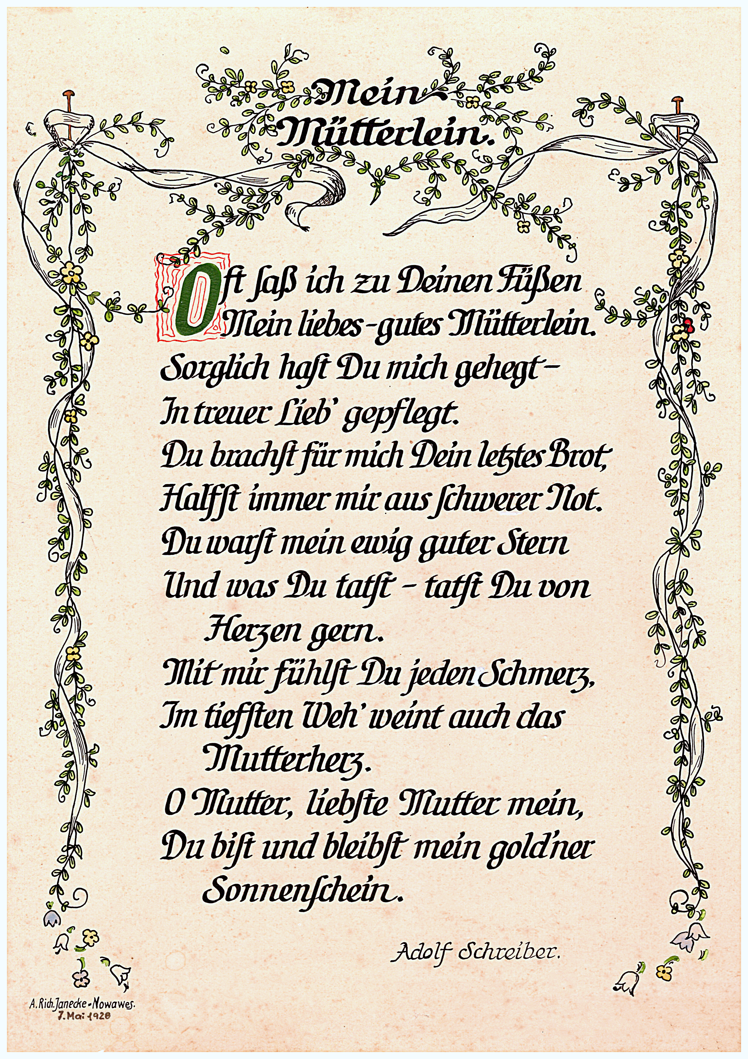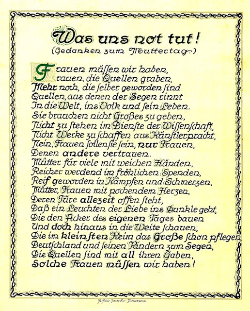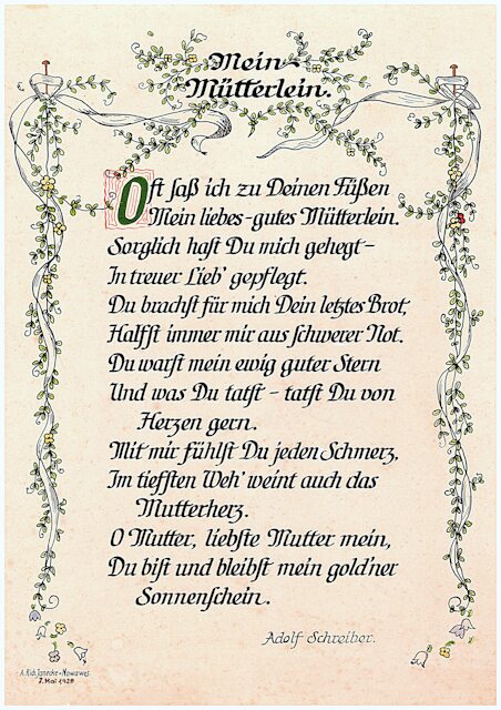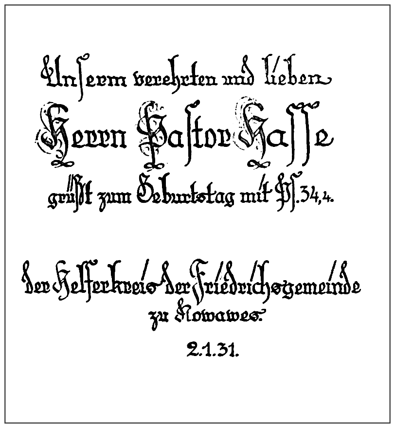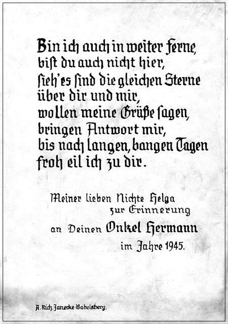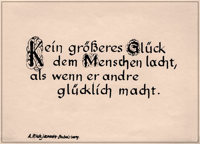 Dieses bekannte Wort, als Gruß im Jahre 1978, zum 81. Geburtstag der Käthe. Richard schreibt diesen Spruch in seinem 79. Lebensjahr.