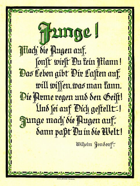Im Folgenden sehen wir aus der reichen Auswahl einige Arbeiten des 14-jährigen Richard, die er dort im Ausbildungsbetrieb zwischen April 1915 und August 1915 erarbeitete.