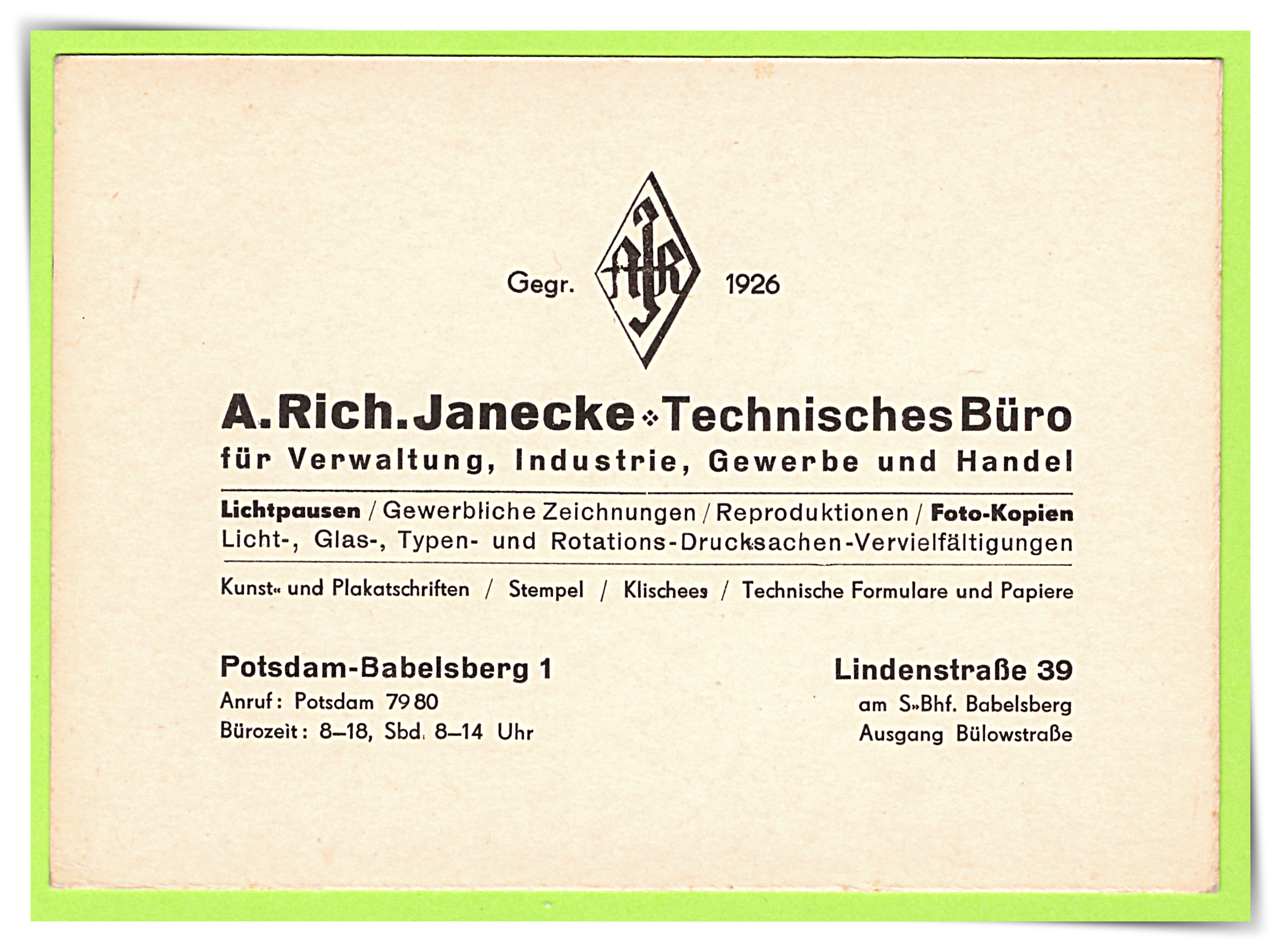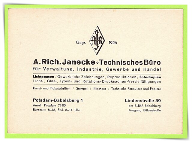 Die nach Kundenwunsch von R. Janecke erstellten Zeichnungen oder Schriftstücke werden bei Bedarf anschließend in beliebiger Stückzahl gedruckt – als exakt-saubere Wiedergabe des Originals.
